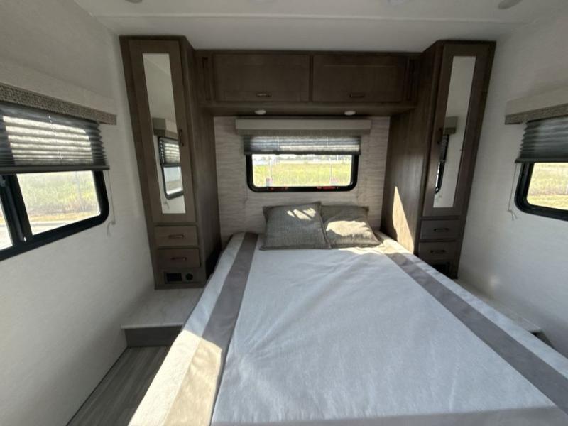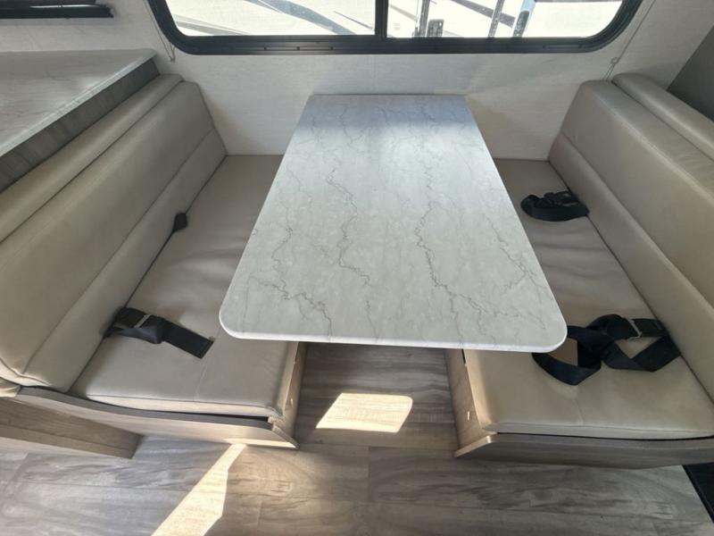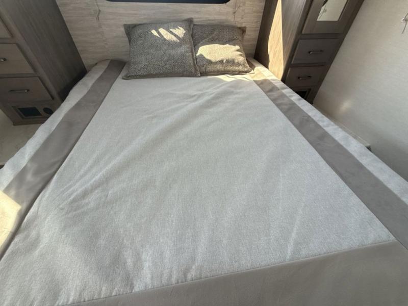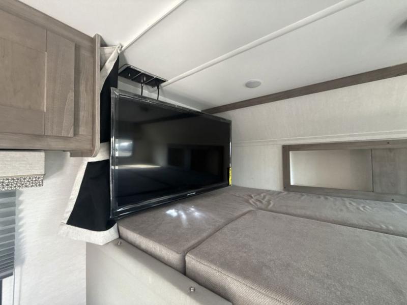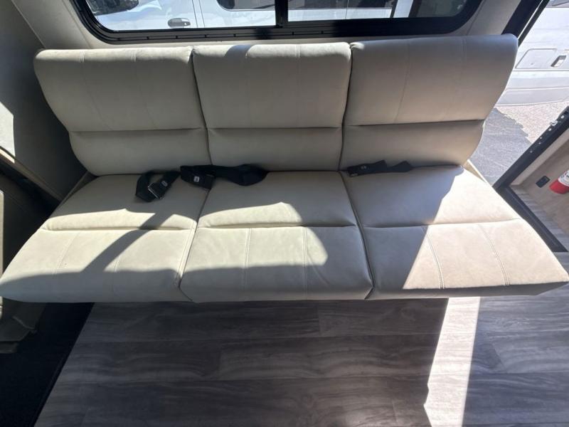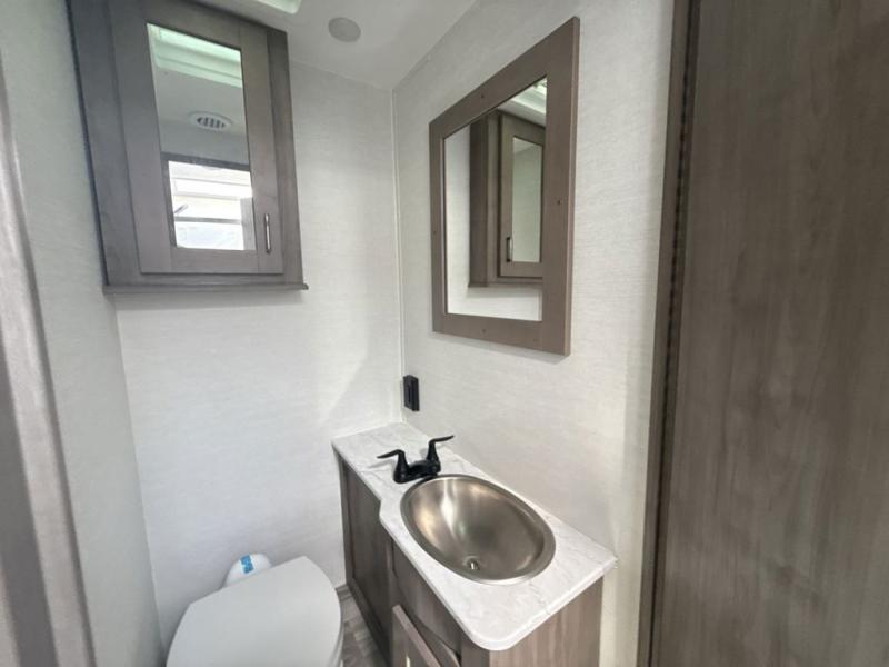 You'll enjoy your time in this coach wherever you decide to roam! The three-burner range and microwave oven will let you make breakfast for everyone in the morning, and there is a booth dinette where you can dine together. Additional seating is found on the jack knife sofa, and both of these pieces of furniture can double as sleeping space for guests. Once the little ones have made their bed in the overhead bunk, they can get freshened up in the shower. The en-suite bath door separates the toilet and sink from the shower, allowing two people to utilize this space at once. You will love having your bedroom to retreat to each night, complete with an RV queen bed, dual shirt closets, and a TV mount if you want to add entertainment here.