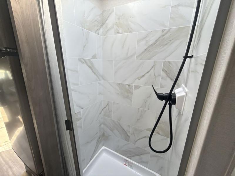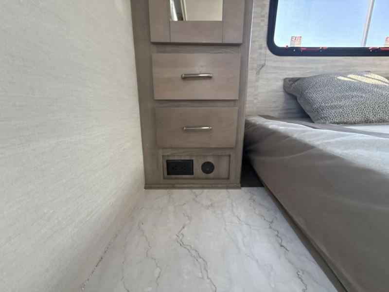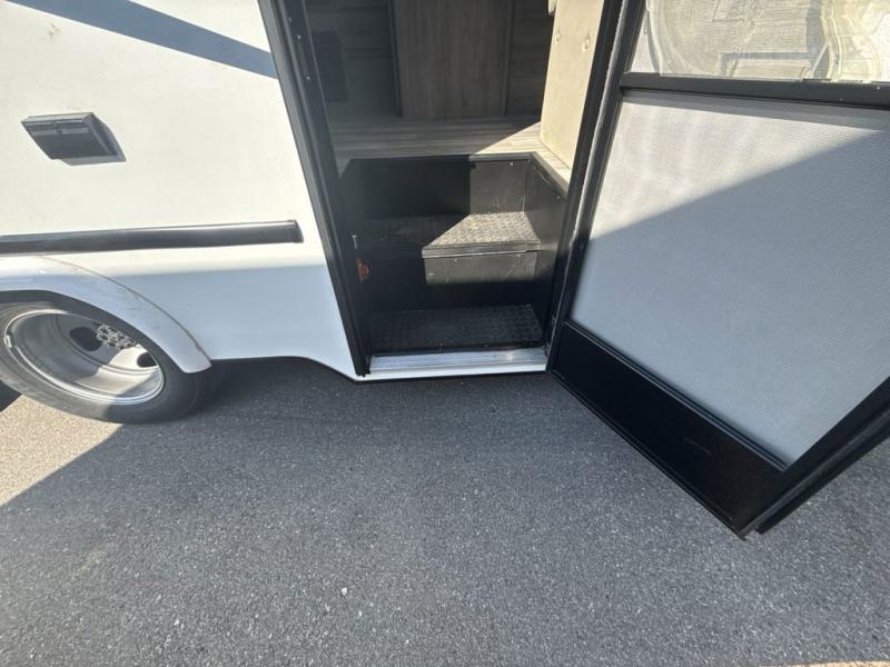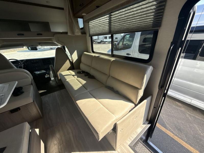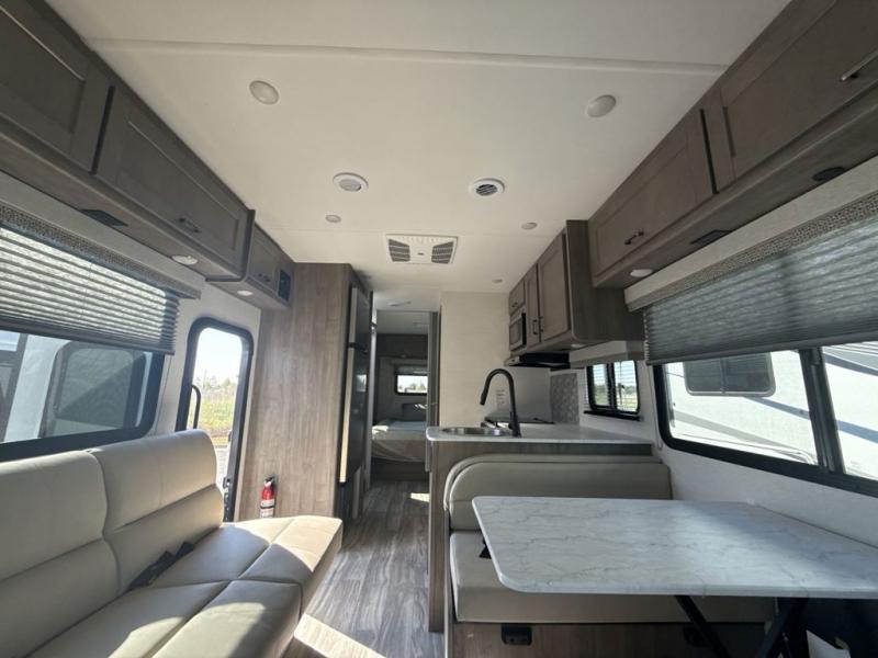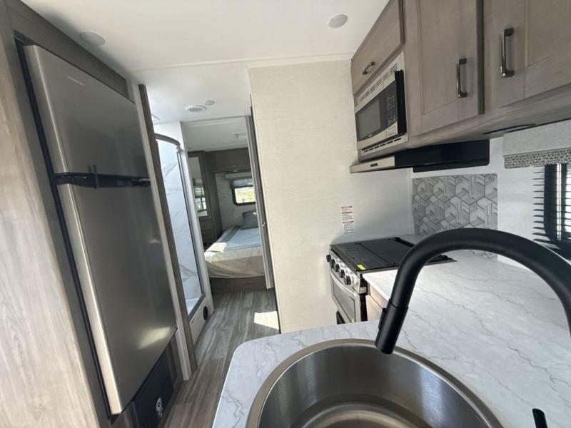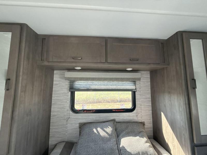 You'll enjoy your time in this coach wherever you decide to roam! The three-burner range and microwave oven will let you make breakfast for everyone in the morning, and there is a booth dinette where you can dine together. Additional seating is found on the jack knife sofa, and both of these pieces of furniture can double as sleeping space for guests. Once the little ones have made their bed in the overhead bunk, they can get freshened up in the shower. The en-suite bath door separates the toilet and sink from the shower, allowing two people to utilize this space at once. You will love having your bedroom to retreat to each night, complete with an RV queen bed, dual shirt closets, and a TV mount if you want to add entertainment here.