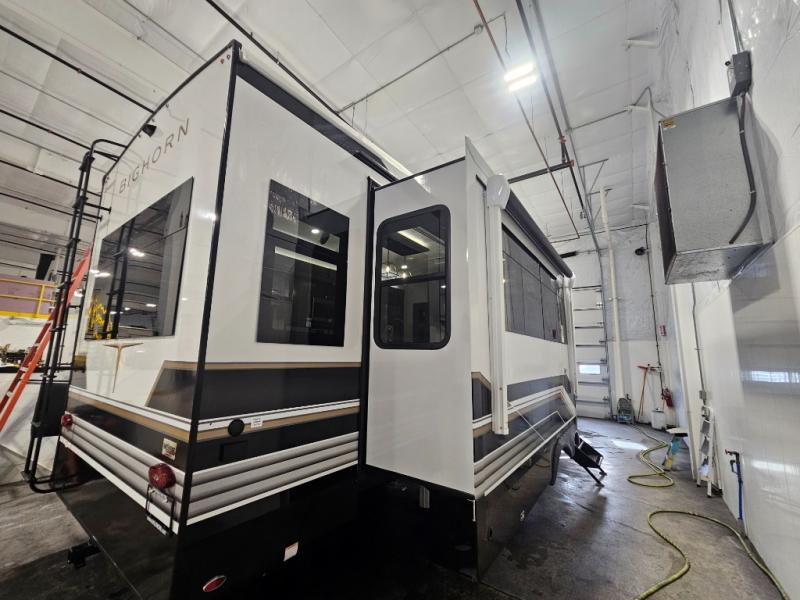 Built with precision and designed for comfort, the Heartland Bighorn fifth wheels combine rugged construction with residential luxury. Its 102-inch-wide body design delivers exceptional interior space, while the CoreShield Walls with 2-inch vacuum-bonded laminated sidewalls and high-density foam insulation provide superior strength, durability, and climate control. The ThermaShield zero-degree tested insulation package, features a fully enclosed, heated underbelly and double-layer fiberglass batt insulation, keeps you comfortable in different climates, from scorching summers to freezing winters. Convenience meets innovation with the pass-through storage featuring Slam-latch baggage doors, offering easy, one-handed access to your gear while maintaining a secure, weather-tight seal.