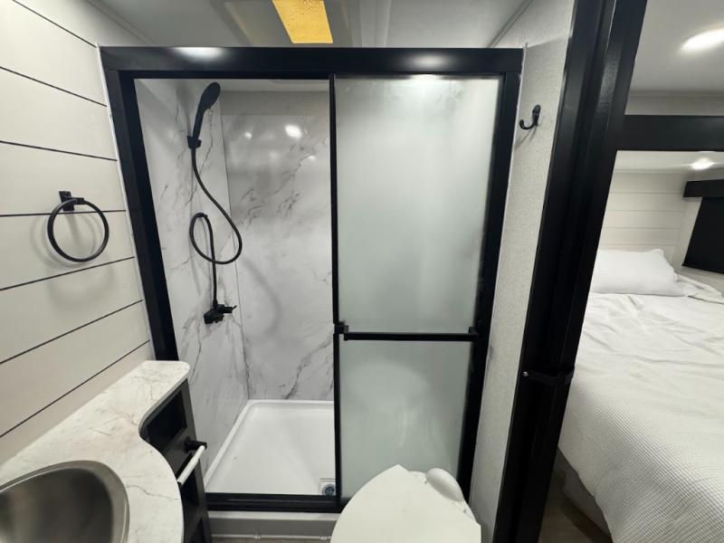 Satisfy your wanderlust with a Heartland Cyclone fifth wheel toy hauler! You won't have to sacrifice any luxury either, with indulgent features like the ducted, fully enclosed, and heated underbelly provides added protection and warmth. Inside, the LED interior lighting throughout ensures that every corner of your RV is bright and inviting, and the bathroom skylight brings in natural light and fresh air, creating a welcoming and refreshing space. Plus, the central command center with built-in tank monitoring keeps you informed and in control, making it easy to manage your resources. Also, the Premium Exterior Package includes diverse features such as Dexter axles with ABS and tow assist with sway mitigation, and the Keyed-Alike lock system ensures that all your locks are keyed the same, providing added security and convenience. Come find the perfect model for you today!