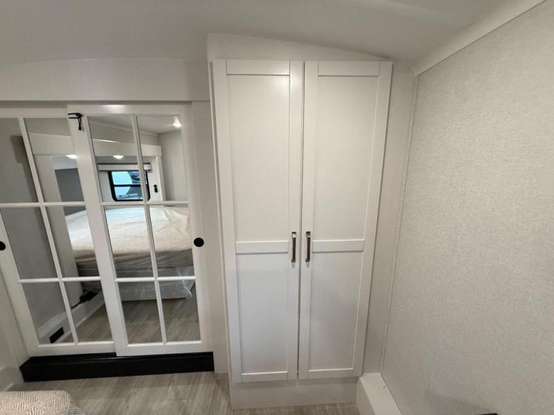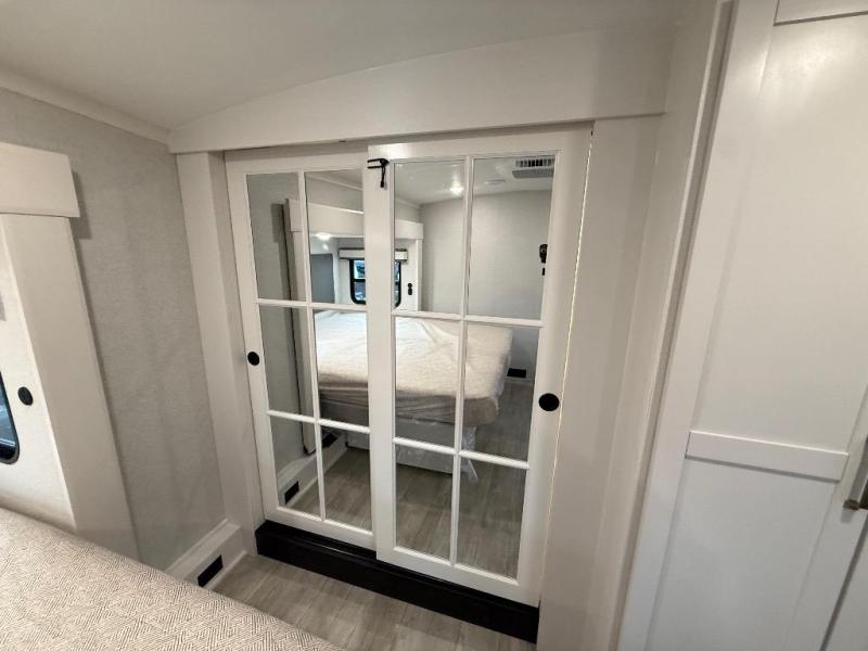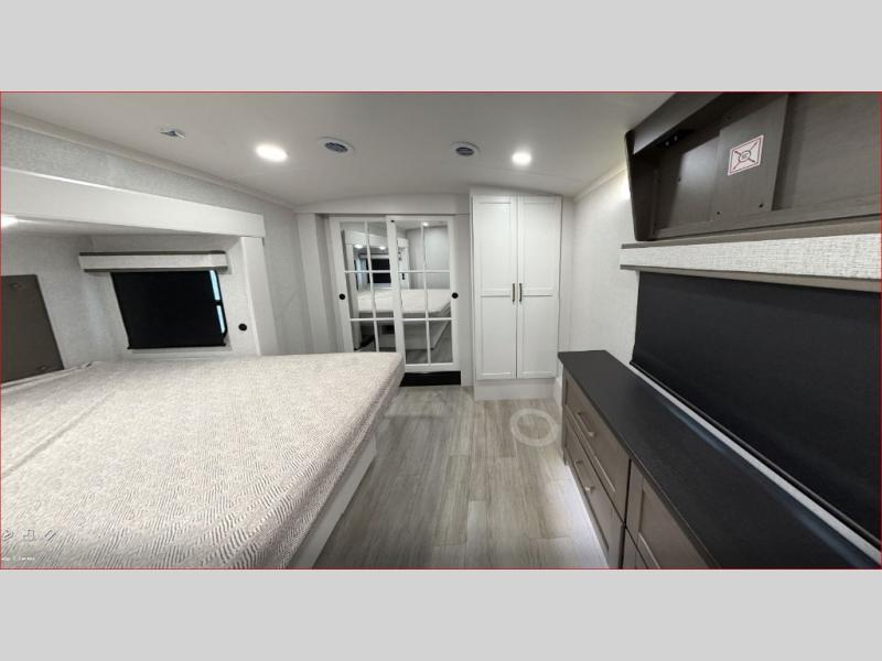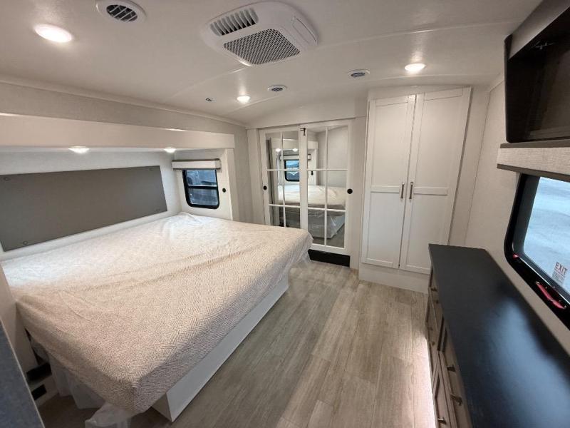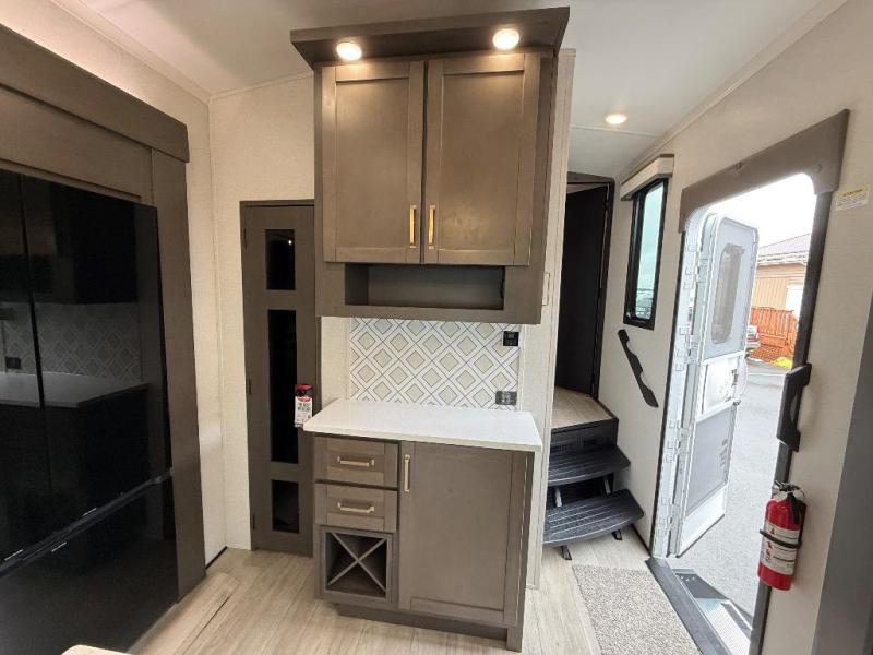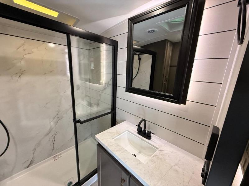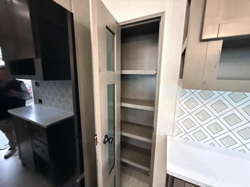 The Heartland Milestone is a full-profile luxury fifth wheel that is ready to help you make the most of your adventures! You will find a TrussTXL Roof System with Alpha roof membrane system offering quality exterior protection, and the Power Up Solar that includes a 200 watt solar panel will let you go off-grid when the adventure calls for it. The upgraded MORryde Step Above entrance steps will help you enter your unit with ease, and the 6-point hydraulic auto-leveling system comes standard to help you keep your unit secure while camping. The interior kitchen has some great features, like residential solid surface countertops and a large farmhouse sink. There are roller night shades throughout each unit to have privacy and comfort.