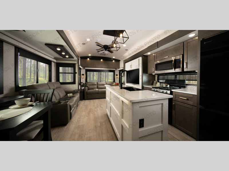 The Heartland Milestone is a full-profile luxury fifth wheel that is ready to help you make the most of your adventures! You will find a TrussTXL Roof System with Alpha roof membrane system offering quality exterior protection, and the Power Up Solar that includes a 200 watt solar panel will let you go off-grid when the adventure calls for it. The upgraded MORryde Step Above entrance steps will help you enter your unit with ease, and the 6-point hydraulic auto-leveling system comes standard to help you keep your unit secure while camping. The interior kitchen has some great features, like residential solid surface countertops and a large farmhouse sink. There are roller night shades throughout each unit to have privacy and comfort.