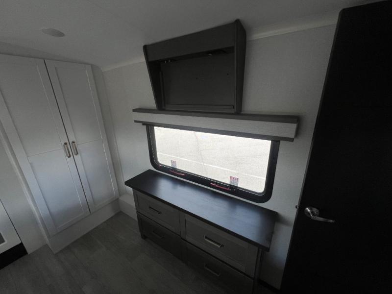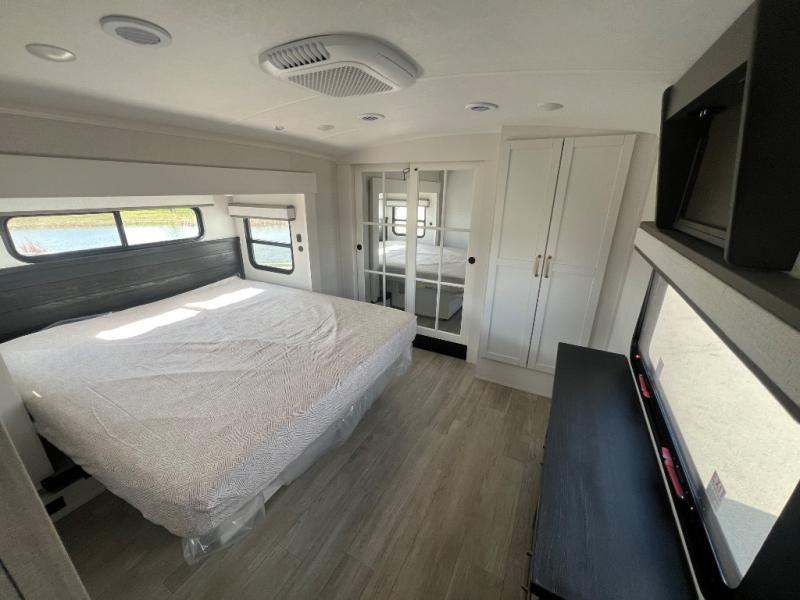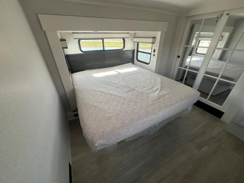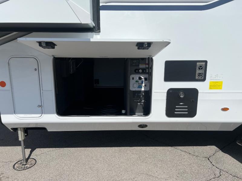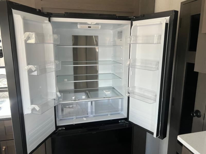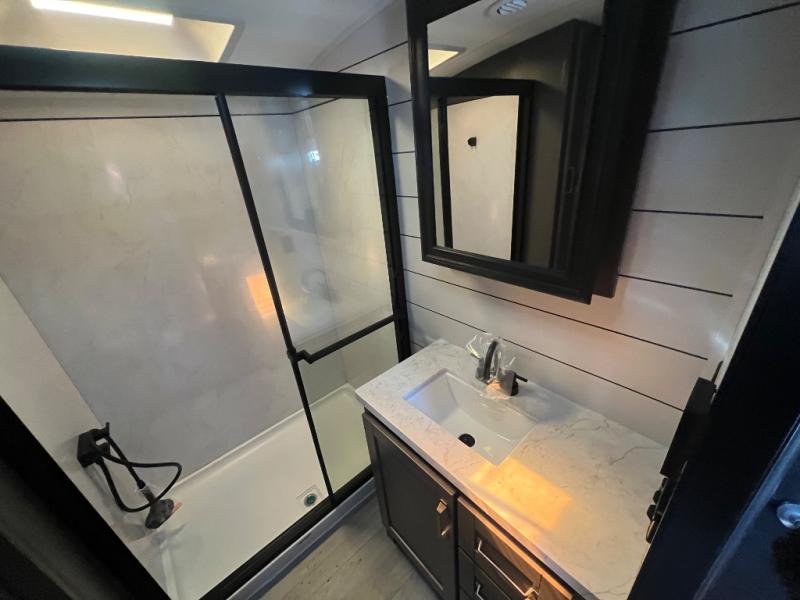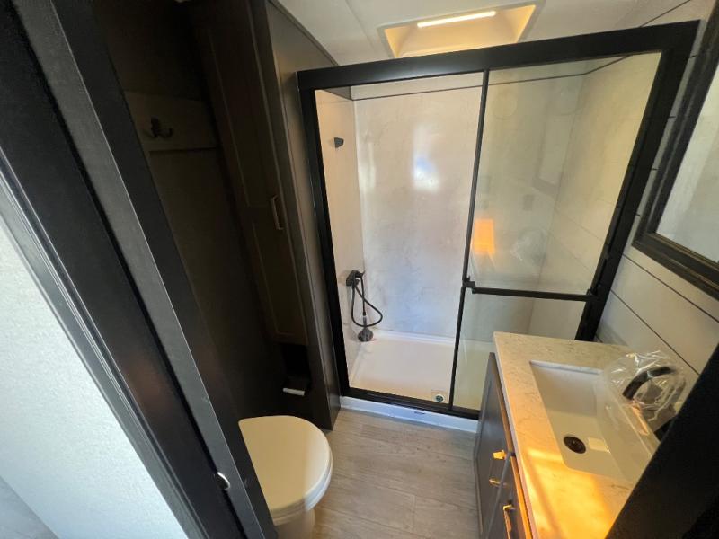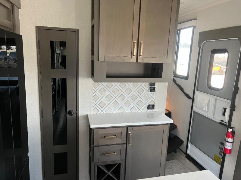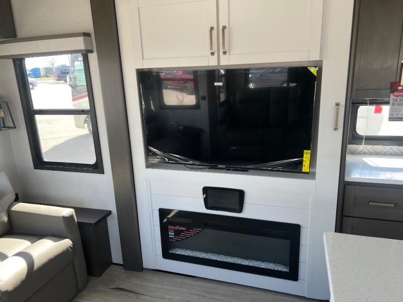 The Heartland Milestone is a full-profile luxury fifth wheel that is ready to help you make the most of your adventures! You will find a TrussTXL Roof System with Alpha roof membrane system offering quality exterior protection, and the Power Up Solar that includes a 200 watt solar panel will let you go off-grid when the adventure calls for it. The upgraded MORryde Step Above entrance steps will help you enter your unit with ease, and the 6-point hydraulic auto-leveling system comes standard to help you keep your unit secure while camping. The interior kitchen has some great features, like residential solid surface countertops and a large farmhouse sink. There are roller night shades throughout each unit to have privacy and comfort.