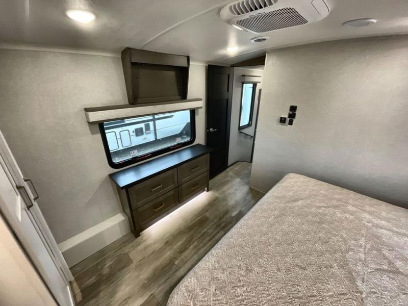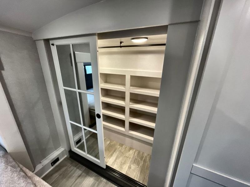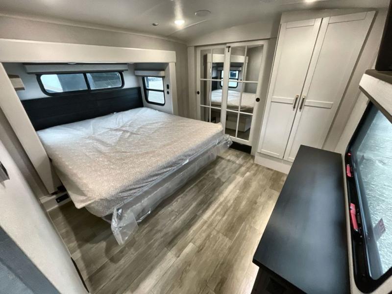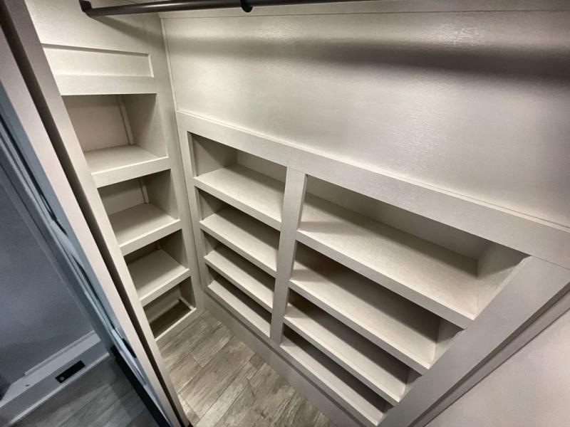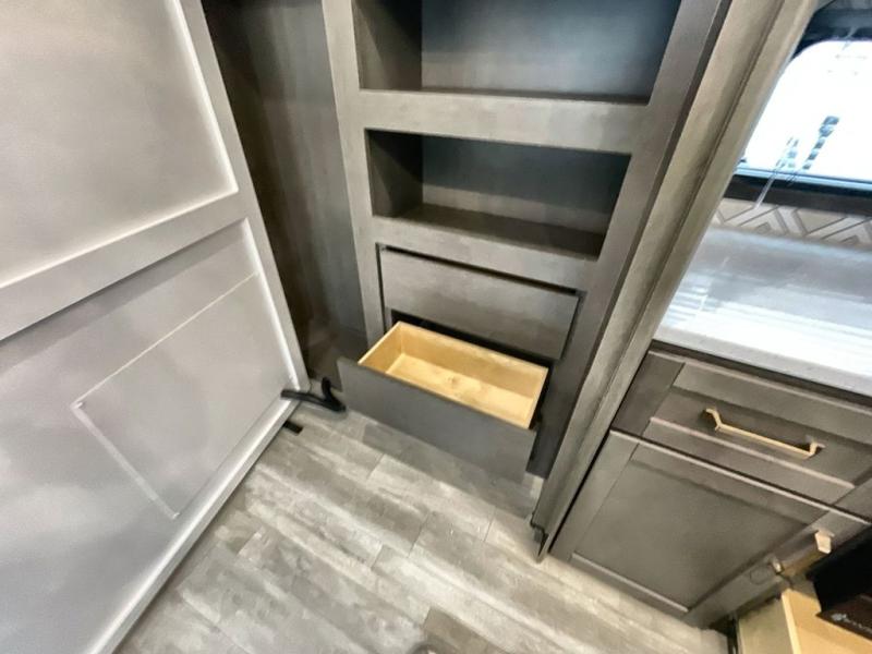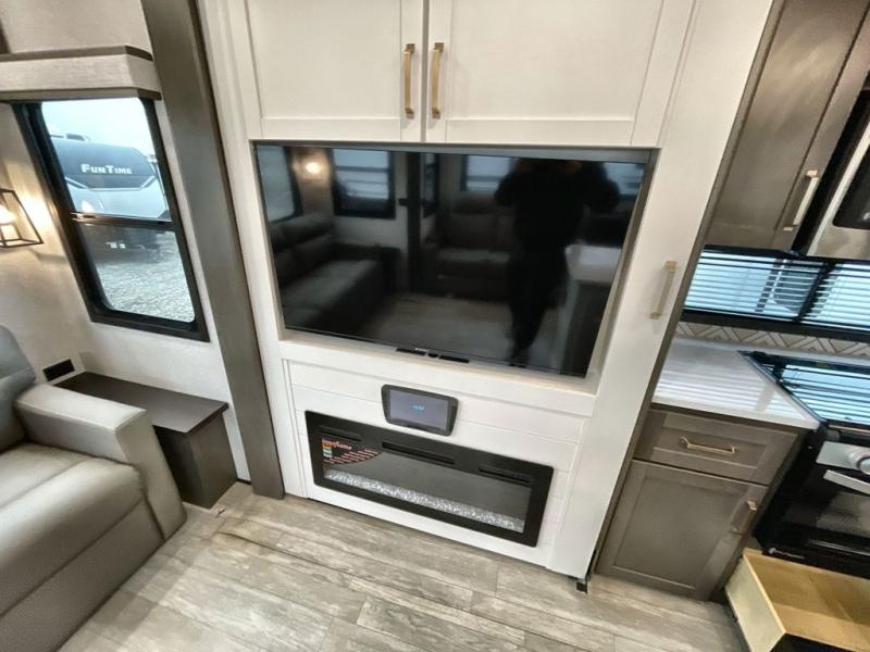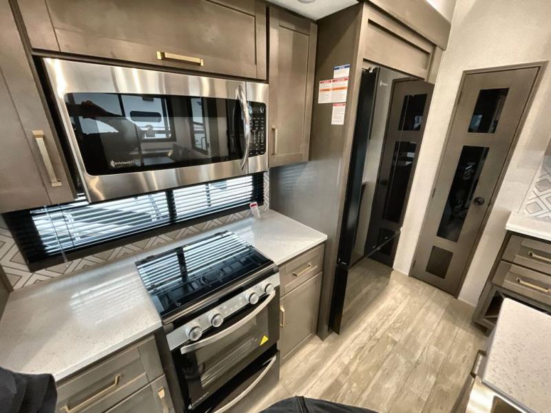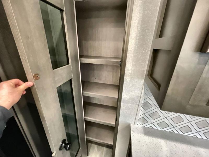 The Heartland Milestone is a full-profile luxury fifth wheel that is ready to help you make the most of your adventures! You will find a TrussTXL Roof System with Alpha roof membrane system offering quality exterior protection, and the Power Up Solar that includes a 200 watt solar panel will let you go off-grid when the adventure calls for it. The upgraded MORryde Step Above entrance steps will help you enter your unit with ease, and the 6-point hydraulic auto-leveling system comes standard to help you keep your unit secure while camping. The interior kitchen has some great features, like residential solid surface countertops and a large farmhouse sink. There are roller night shades throughout each unit to have privacy and comfort.