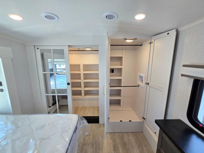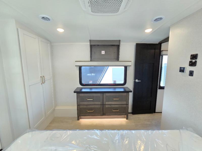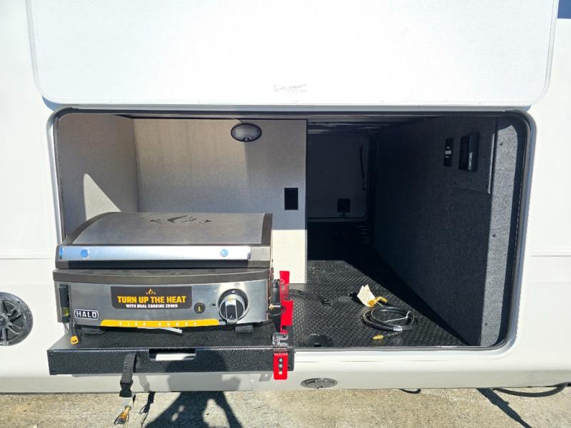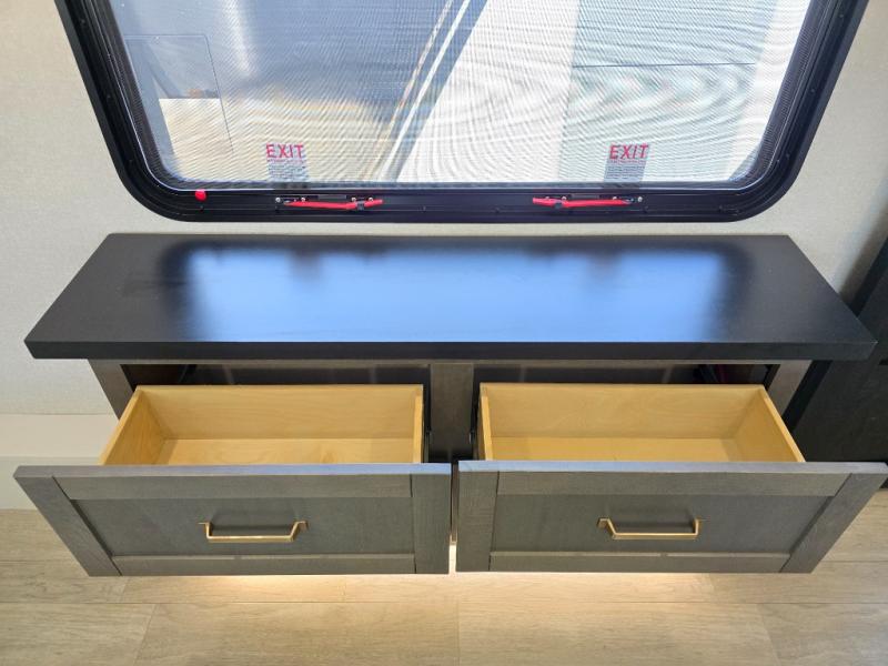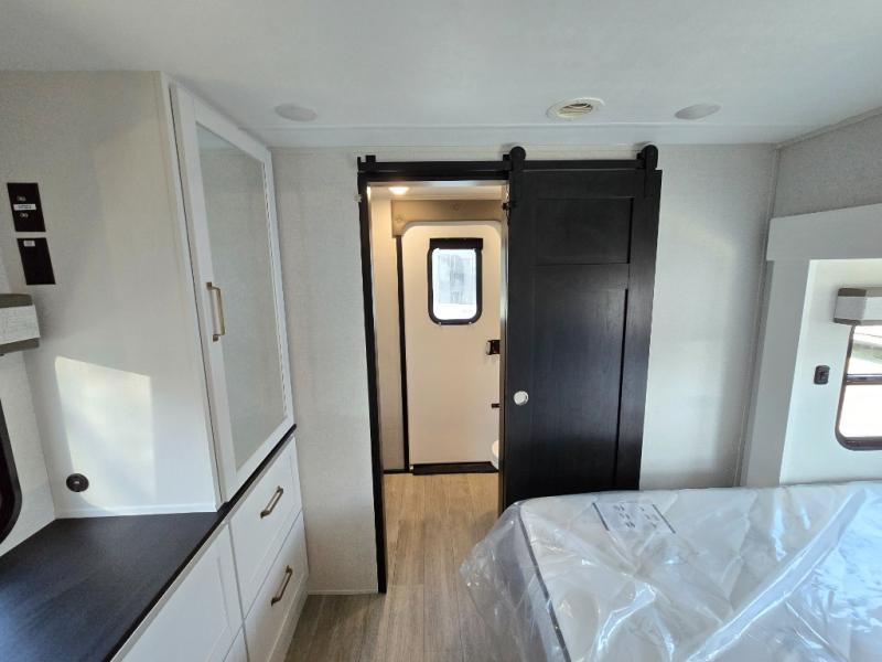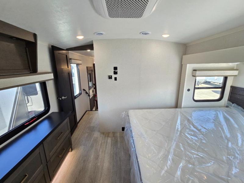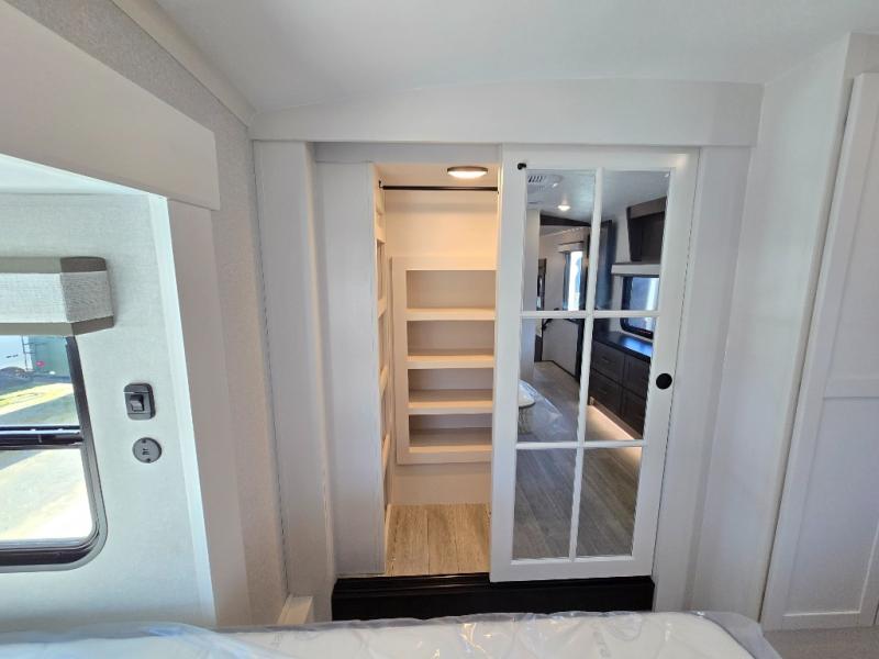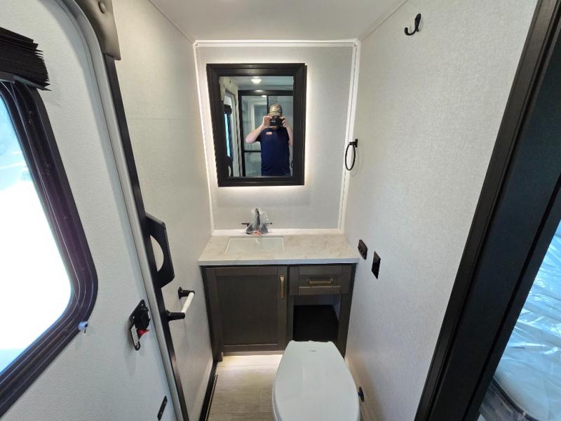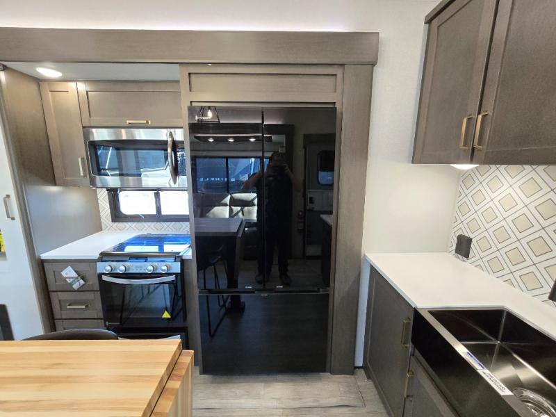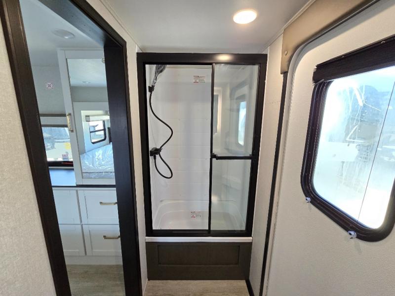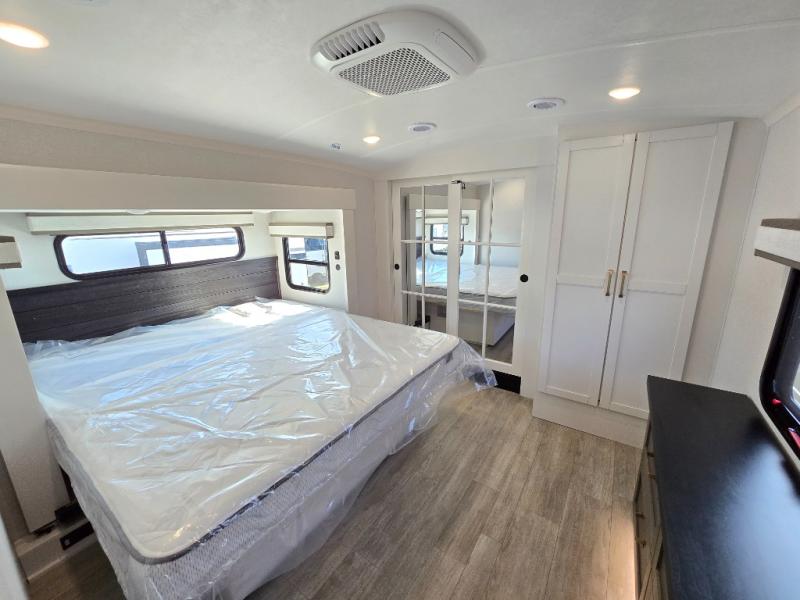 The Heartland Milestone is a full-profile luxury fifth wheel that is ready to help you make the most of your adventures! You will find a TrussTXL Roof System with Alpha roof membrane system offering quality exterior protection, and the Power Up Solar that includes a 200 watt solar panel will let you go off-grid when the adventure calls for it. The upgraded MORryde Step Above entrance steps will help you enter your unit with ease, and the 6-point hydraulic auto-leveling system comes standard to help you keep your unit secure while camping. The interior kitchen has some great features, like residential solid surface countertops and a large farmhouse sink. There are roller night shades throughout each unit to have privacy and comfort.