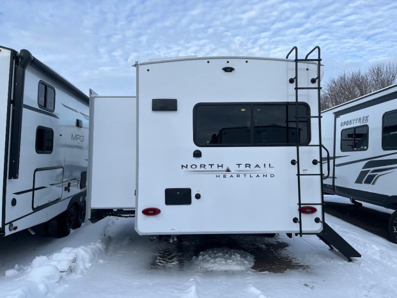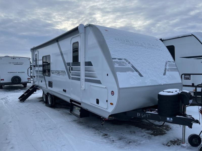 Built for comfort, durability, and modern convenience, these Heartland North Trail travel trailers offer everything you need for a premium camping experience. Each model features a strong American-made Norco Z-frame with an aerodynamic front profile and front diamond plating for added protection. The exclusive TrusstXL Roof System and CoreShield vacuum-bonded walls with Azdel provide superior insulation. Inside, enjoy residential comforts like seamless countertops, solid hardwood maple cabinet doors, LED lighting throughout, and 60 x 80 in. queen beds or 60 x 76 in. Murphy beds. Tech-ready features include an LED smart TV, USB ports, TPMS monitoring, and a 200W solar panel with 30 AMP digital controller. With a Quiet Series A/C, on-demand 60K BTU water heater, with these trailers you are equipped to make every trip comfortable and adventure-ready.