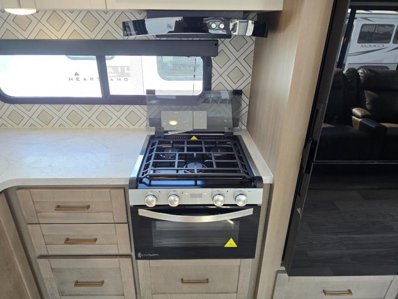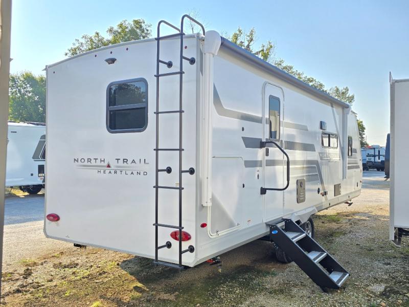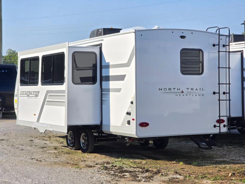 Built for comfort, durability, and modern convenience, these Heartland North Trail travel trailers offer everything you need for a premium camping experience. Each model features a strong American-made Norco Z-frame with an aerodynamic front profile and front diamond plating for added protection. The exclusive TrusstXL Roof System and CoreShield vacuum-bonded walls with Azdel provide superior insulation. Inside, enjoy residential comforts like seamless countertops, solid hardwood maple cabinet doors, LED lighting throughout, and 60 x 80 in. queen beds or 60 x 76 in. Murphy beds. Tech-ready features include an LED smart TV, USB ports, TPMS monitoring, and a 200W solar panel with 30 AMP digital controller. With a Quiet Series A/C, on-demand 60K BTU water heater, with these trailers you are equipped to make every trip comfortable and adventure-ready.