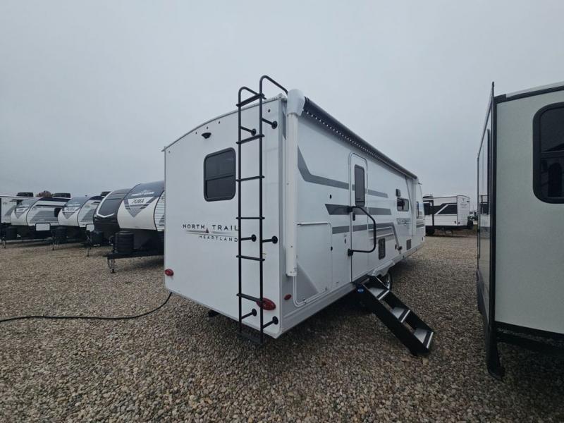 Built for comfort, durability, and modern convenience, these Heartland North Trail travel trailers offer everything you need for a premium camping experience. Each model features a strong American-made Norco Z-frame with an aerodynamic front profile and front diamond plating for added protection. The exclusive TrusstXL Roof System and CoreShield vacuum-bonded walls with Azdel provide superior insulation. Inside, enjoy residential comforts like seamless countertops, solid hardwood maple cabinet doors, LED lighting throughout, and 60 x 80 in. queen beds or 60 x 76 in. Murphy beds. Tech-ready features include an LED smart TV, USB ports, TPMS monitoring, and a 200W solar panel with 30 AMP digital controller. With a Quiet Series A/C, on-demand 60K BTU water heater, with these trailers you are equipped to make every trip comfortable and adventure-ready.