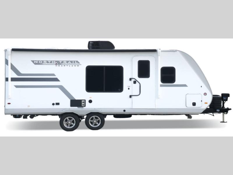Built for comfort, durability, and modern convenience, these Heartland North Trail travel trailers offer everything you need for a premium camping experience. Each model features a strong American-made Norco Z-frame with an aerodynamic front profile and front diamond plating for added protection. The exclusive TrusstXL Roof System and CoreShield vacuum-bonded walls with Azdel provide superior insulation. Inside, enjoy residential comforts like seamless countertops, solid hardwood maple cabinet doors, LED lighting throughout, and 60 x 80 in. queen beds or 60 x 76 in. Murphy beds. Tech-ready features include an LED smart TV, USB ports, TPMS monitoring, and a 200W solar panel with 30 AMP digital controller. With a Quiet Series A/C, on-demand 60K BTU water heater, with these trailers you are equipped to make every trip comfortable and adventure-ready.