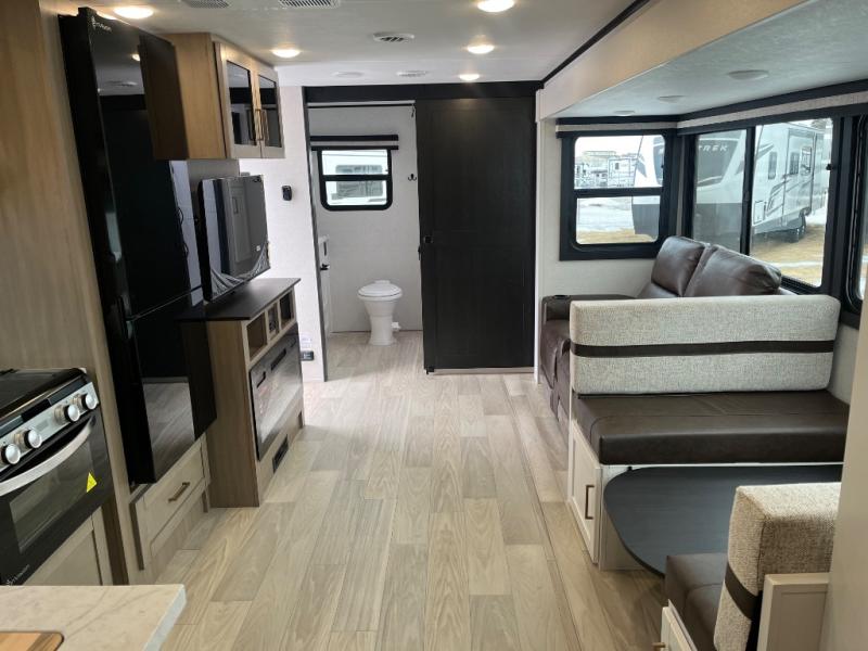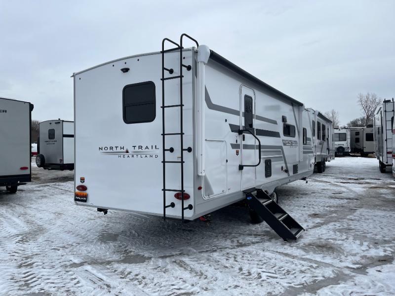 Built for comfort, durability, and modern convenience, these Heartland North Trail travel trailers offer everything you need for a premium camping experience. Each model features a strong American-made Norco Z-frame with an aerodynamic front profile and front diamond plating for added protection. The exclusive TrusstXL Roof System and CoreShield vacuum-bonded walls with Azdel provide superior insulation. Inside, enjoy residential comforts like seamless countertops, solid hardwood maple cabinet doors, LED lighting throughout, and 60 x 80 in. queen beds or 60 x 76 in. Murphy beds. Tech-ready features include an LED smart TV, USB ports, TPMS monitoring, and a 200W solar panel with 30 AMP digital controller. With a Quiet Series A/C, on-demand 60K BTU water heater, with these trailers you are equipped to make every trip comfortable and adventure-ready.