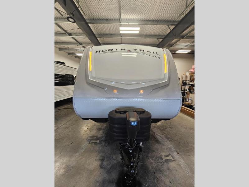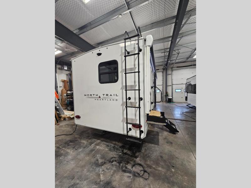 Built for comfort, durability, and modern convenience, these Heartland North Trail travel trailers offer everything you need for a premium camping experience. Each model features a strong American-made Norco Z-frame with an aerodynamic front profile and front diamond plating for added protection. The exclusive TrusstXL Roof System and CoreShield vacuum-bonded walls with Azdel provide superior insulation. Inside, enjoy residential comforts like seamless countertops, solid hardwood maple cabinet doors, LED lighting throughout, and 60 x 80 in. queen beds or 60 x 76 in. Murphy beds. Tech-ready features include an LED smart TV, USB ports, TPMS monitoring, and a 200W solar panel with 30 AMP digital controller. With a Quiet Series A/C, on-demand 60K BTU water heater, with these trailers you are equipped to make every trip comfortable and adventure-ready.