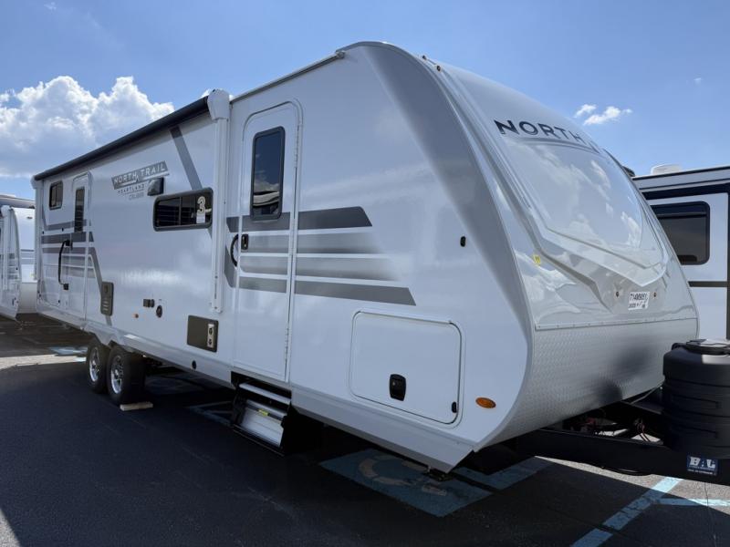 Built for comfort, durability, and modern convenience, these Heartland North Trail travel trailers offer everything you need for a premium camping experience. Each model features a strong American-made Norco Z-frame with an aerodynamic front profile and front diamond plating for added protection. The exclusive TrusstXL Roof System and CoreShield vacuum-bonded walls with Azdel provide superior insulation. Inside, enjoy residential comforts like seamless countertops, solid hardwood maple cabinet doors, LED lighting throughout, and 60 x 80 in. queen beds or 60 x 76 in. Murphy beds. Tech-ready features include an LED smart TV, USB ports, TPMS monitoring, and a 200W solar panel with 30 AMP digital controller. With a Quiet Series A/C, on-demand 60K BTU water heater, with these trailers you are equipped to make every trip comfortable and adventure-ready.