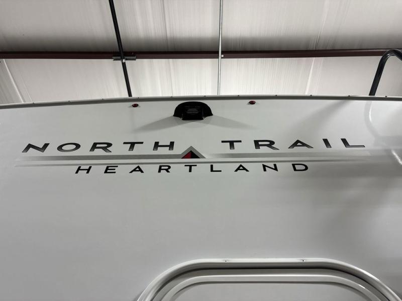 Built for comfort, durability, and modern convenience, these Heartland North Trail travel trailers offer everything you need for a premium camping experience. Each model features a strong American-made Norco Z-frame with an aerodynamic front profile and front diamond plating for added protection. The exclusive TrusstXL Roof System and CoreShield vacuum-bonded walls with Azdel provide superior insulation. Inside, enjoy residential comforts like seamless countertops, solid hardwood maple cabinet doors, LED lighting throughout, and 60 x 80 in. queen beds or 60 x 76 in. Murphy beds. Tech-ready features include an LED smart TV, USB ports, TPMS monitoring, and a 200W solar panel with 30 AMP digital controller. With a Quiet Series A/C, on-demand 60K BTU water heater, with these trailers you are equipped to make every trip comfortable and adventure-ready.
