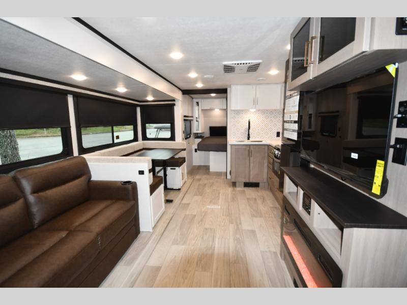 Inside, the spacious layout comfortably sleeps the whole crew. Double-over-double rear bunks provide a dedicated sleeping space for kids or guests, while the private front queen bedroom offers a quiet retreat after a long day of exploring. The convertible dinette and sofa expand your sleeping capacity, making the 260DB perfect for families and group travel.