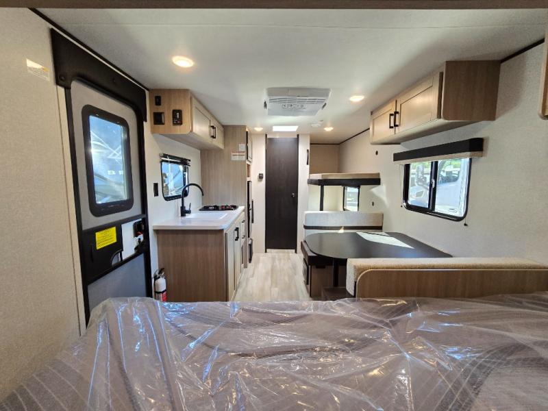 With any Prowler travel trailer, you will enjoy convenient amenities and at-home comforts wherever you decide to camp! Each one is built with a durable fully integrated A-frame, a TrussXL roof system, and galvanized wheel wells. And the self-adjusting brakes, easy-lube axles and nitrogen filled radial tires will provide smooth towing. Inside, you'll enjoy vinyl flooring throughout that will be easy to keep clean, durable, residential-inspired kitchen countertops, a residential-style high-rise kitchen faucet, and solid hardwood cabinet doors with hidden hinges and screwed stile construction. The mandatory Camping in Comfort Package includes a large folding entry door grab handle, MORryde Step Above entry steps, an on-demand tankless water heater, and stylish window shades. There are also available options that vary between single and double axle units that will allow you to customize your Prowler to fit your needs!