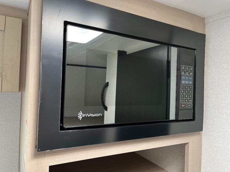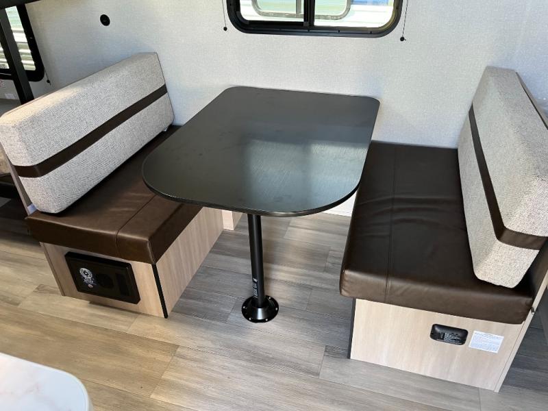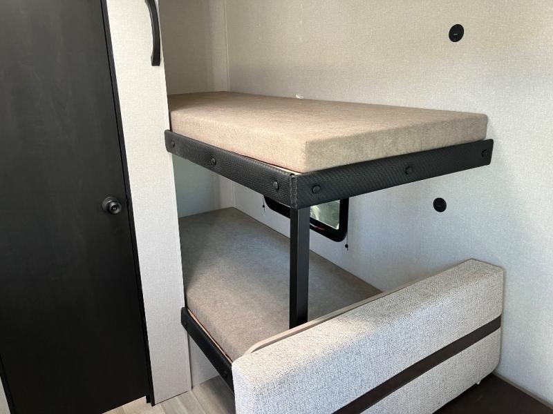 Camping trips are made easy in this Lynx Edition travel trailer with bunk beds for guests or little ones. You'll find the front queen bed for a great night's rest, along with a nightstand and wardrobe to keep your things tidy. The rear corner private bath includes a foot-flush toilet and a 24" x 36" shower, so you won't have to leave the camper in the middle of the night. A two-burner cooktop and microwave oven will let you make meals each day, and a 12V refrigerator will keep your food fresh!