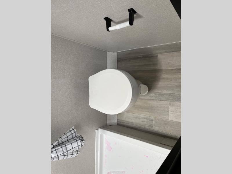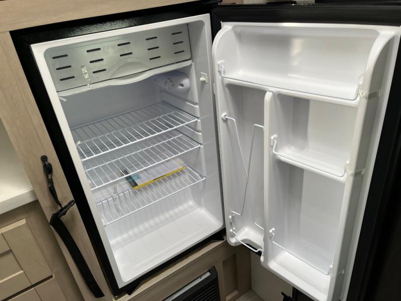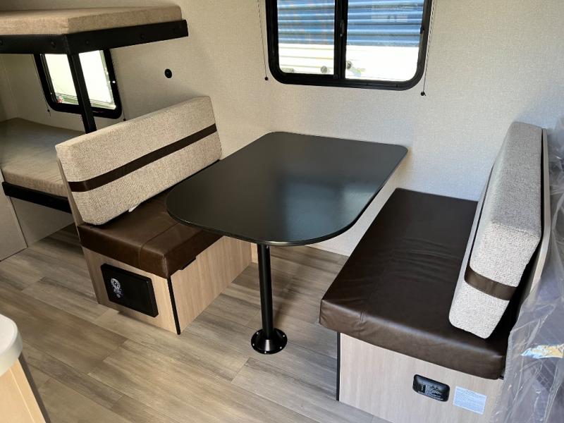 Camping trips are made easy in this Lynx Edition travel trailer with bunk beds for guests or little ones. You'll find the front queen bed for a great night's rest, along with a nightstand and wardrobe to keep your things tidy. The rear corner private bath includes a foot-flush toilet and a 24" x 36" shower, so you won't have to leave the camper in the middle of the night. A two-burner cooktop and microwave oven will let you make meals each day, and a 12V refrigerator will keep your food fresh!