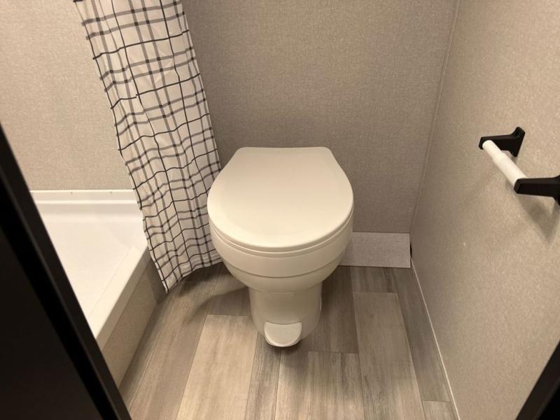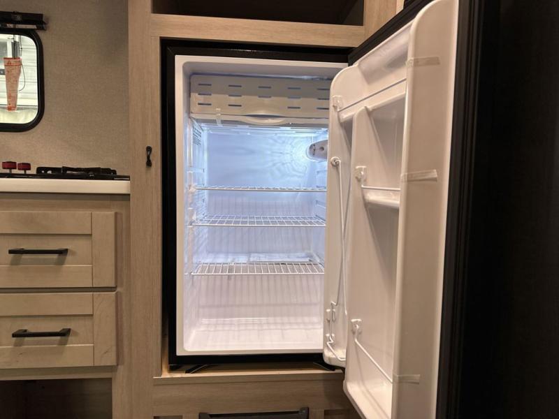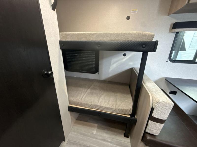 Camping trips are made easy in this Lynx Edition travel trailer with bunk beds for guests or little ones. You'll find the front queen bed for a great night's rest, along with a nightstand and wardrobe to keep your things tidy. The rear corner private bath includes a foot-flush toilet and a 24" x 36" shower, so you won't have to leave the camper in the middle of the night. A two-burner cooktop and microwave oven will let you make meals each day, and a 12V refrigerator will keep your food fresh!
