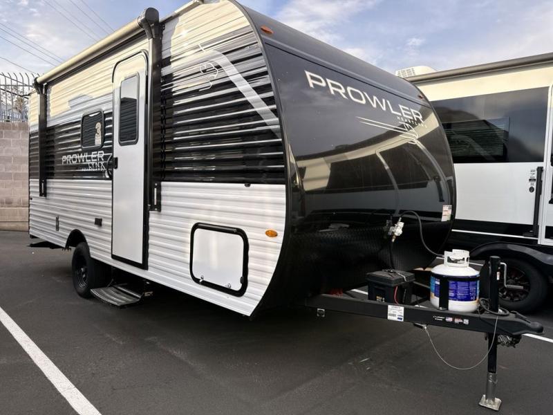 With any Prowler travel trailer, you will enjoy convenient amenities and at-home comforts wherever you decide to camp! Each one is built with a durable fully integrated A-frame, a TrussXL roof system, and galvanized wheel wells. And the self-adjusting brakes, easy-lube axles and nitrogen filled radial tires will provide smooth towing. Inside, you'll enjoy vinyl flooring throughout that will be easy to keep clean, durable, residential-inspired kitchen countertops, a residential-style high-rise kitchen faucet, and solid hardwood cabinet doors with hidden hinges and screwed stile construction. The mandatory Camping in Comfort Package includes a large folding entry door grab handle, MORryde Step Above entry steps, an on-demand tankless water heater, and stylish window shades. There are also available options that vary between single and double axle units that will allow you to customize your Prowler to fit your needs!