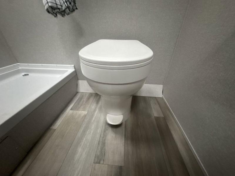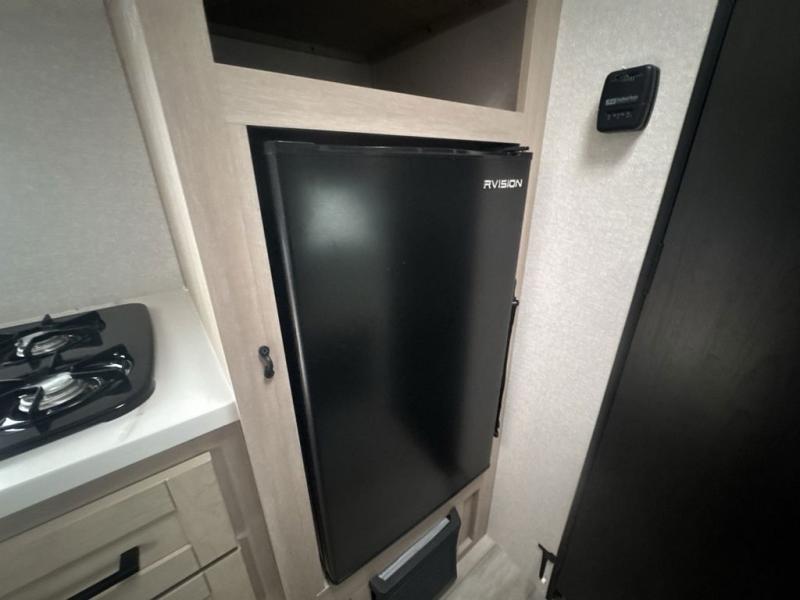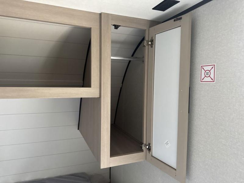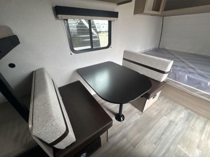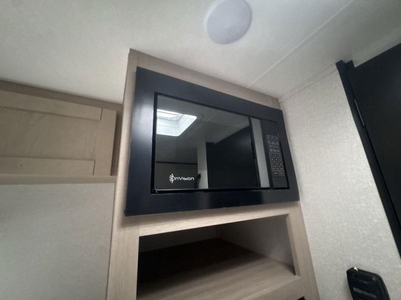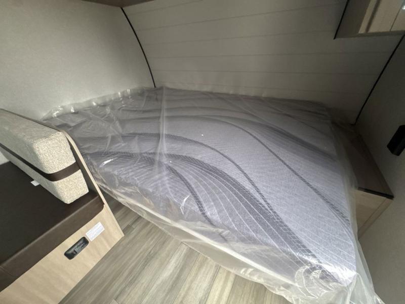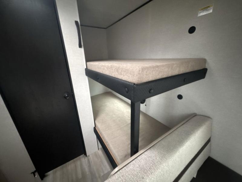 Camping trips are made easy in this Lynx Edition travel trailer with bunk beds for guests or little ones. You'll find the front queen bed for a great night's rest, along with a nightstand and wardrobe to keep your things tidy. The rear corner private bath includes a foot-flush toilet and a 24" x 36" shower, so you won't have to leave the camper in the middle of the night. A two-burner cooktop and microwave oven will let you make meals each day, and a 12V refrigerator will keep your food fresh!