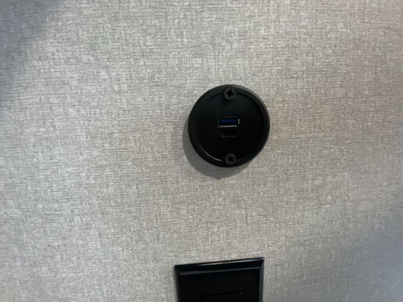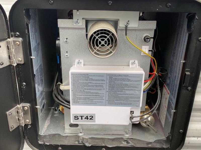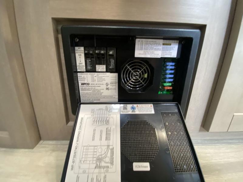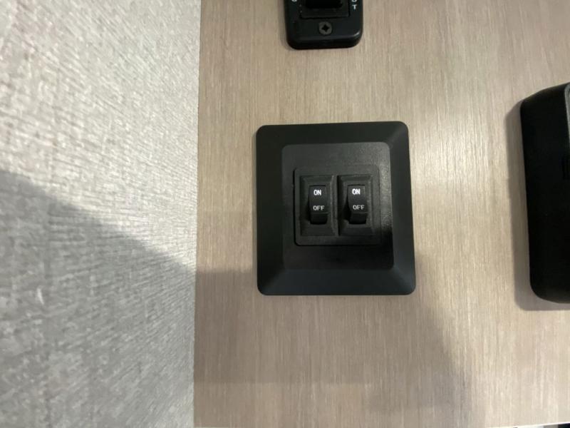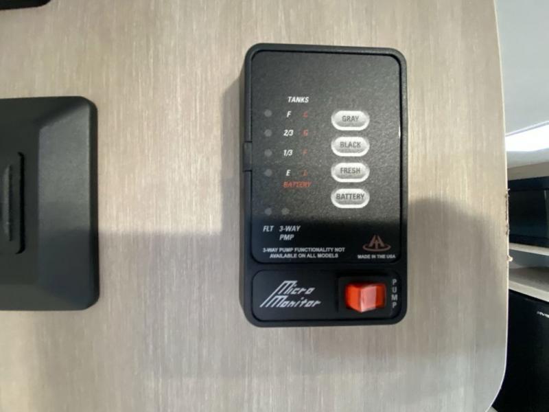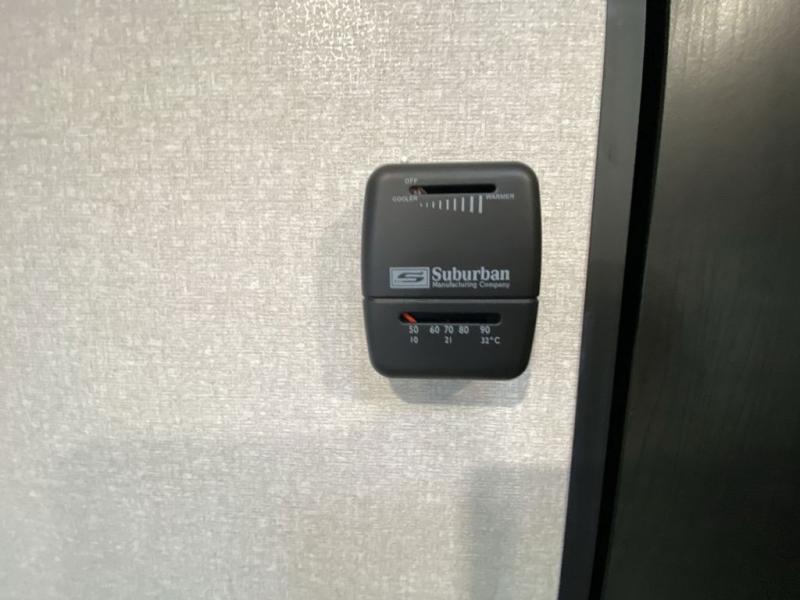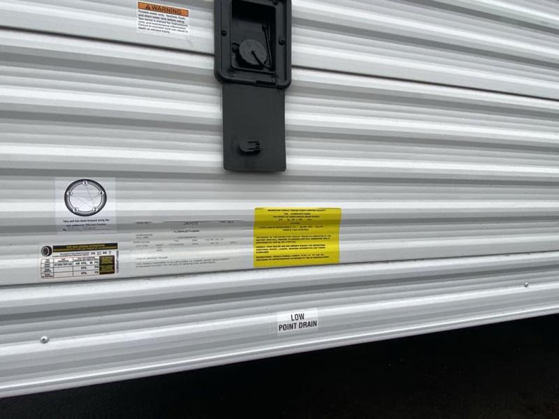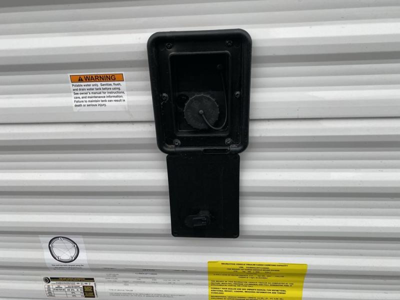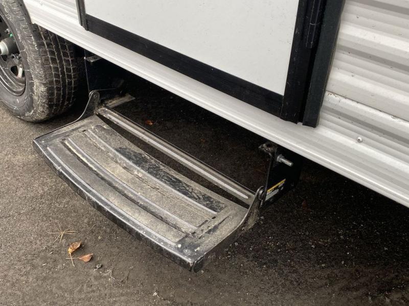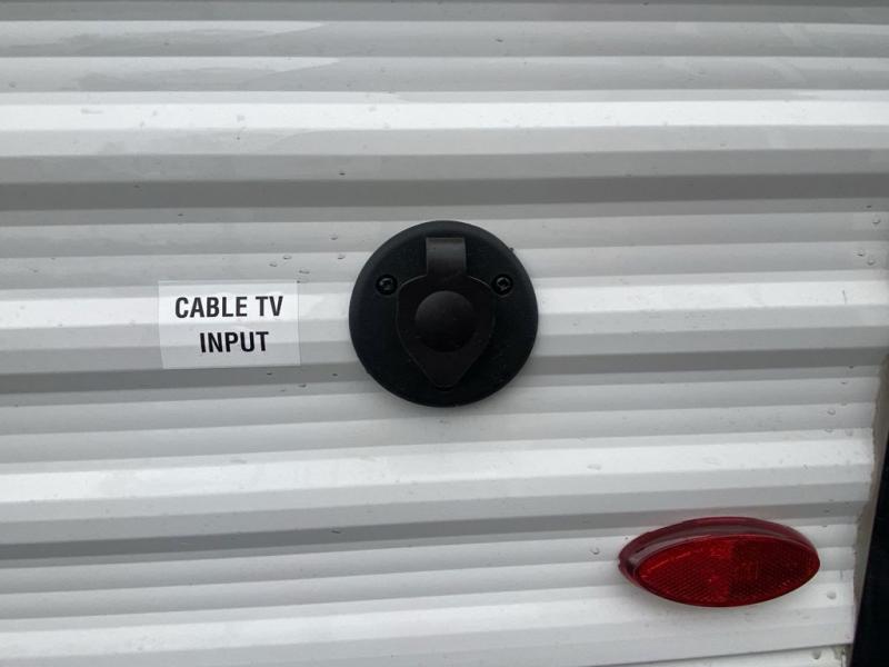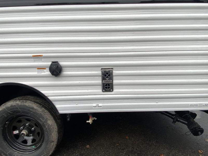This travel trailer provides you with a little more privacy thanks to the rear bath, which also includes a bath linen closet and shelves for extra storage. The front bedroom includes a walk-around RV queen bed to make it easier to make the bed, and you'll find an overhead shelf for books or games. Once you've made lunch on the two-burner cooktop or in the microwave oven, you can dine at the booth dinette or take your plate outdoors to sit under the 10' power awning.