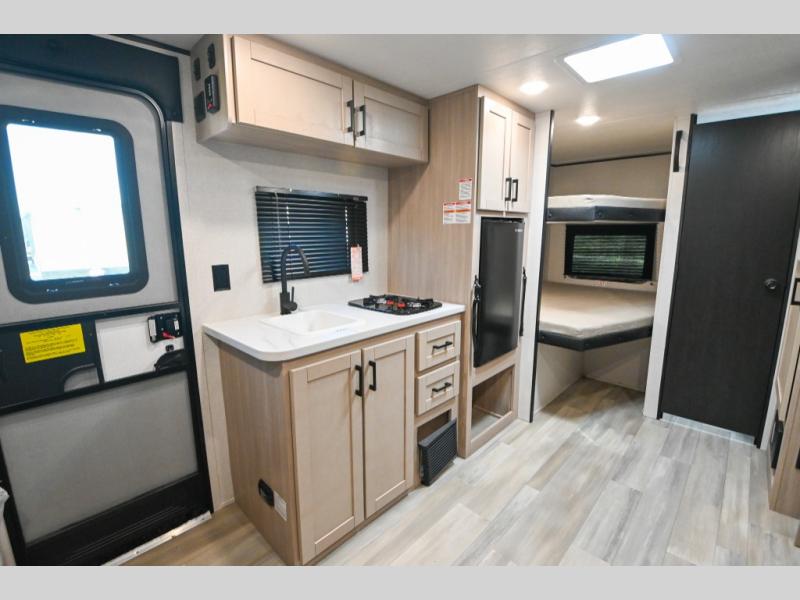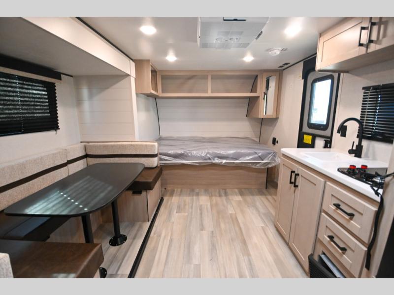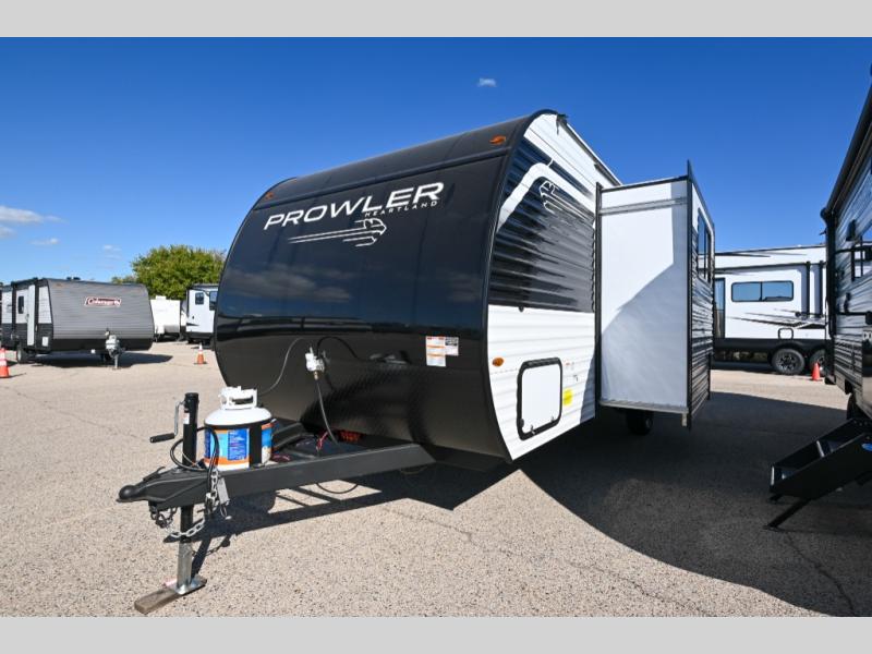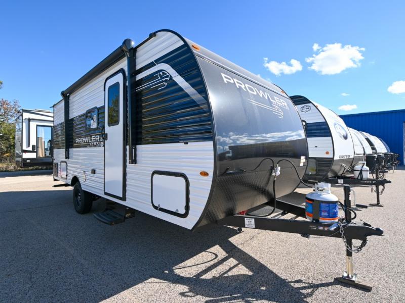 With any Prowler travel trailer, you will enjoy convenient amenities and at-home comforts wherever you decide to camp! Each one is built with a durable fully integrated A-frame, a TrussXL roof system, and galvanized wheel wells. And the self-adjusting brakes, easy-lube axles and nitrogen filled radial tires will provide smooth towing. Inside, you'll enjoy vinyl flooring throughout that will be easy to keep clean, durable, residential-inspired kitchen countertops, a residential-style high-rise kitchen faucet, and solid hardwood cabinet doors with hidden hinges and screwed stile construction. The mandatory Camping in Comfort Package includes a large folding entry door grab handle, MORryde Step Above entry steps, an on-demand tankless water heater, and stylish window shades. There are also available options that vary between single and double axle units that will allow you to customize your Prowler to fit your needs!
