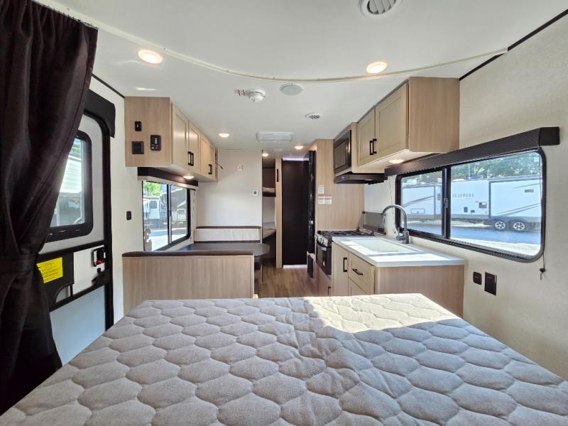 With any Prowler travel trailer, you will enjoy convenient amenities and at-home comforts wherever you decide to camp! Each one is built with a durable fully integrated A-frame, a TrussXL roof system, and galvanized wheel wells. And the self-adjusting brakes, easy-lube axles and nitrogen filled radial tires will provide smooth towing. Inside, you'll enjoy vinyl flooring throughout that will be easy to keep clean, durable, residential-inspired kitchen countertops, a residential-style high-rise kitchen faucet, and solid hardwood cabinet doors with hidden hinges and screwed stile construction. The mandatory Camping in Comfort Package includes a large folding entry door grab handle, MORryde Step Above entry steps, an on-demand tankless water heater, and stylish window shades. There are also available options that vary between single and double axle units that will allow you to customize your Prowler to fit your needs!