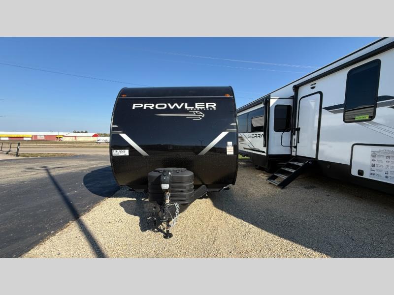 With any Prowler travel trailer, you will enjoy convenient amenities and at-home comforts wherever you decide to camp! Each one is built with a durable fully integrated A-frame, a TrussXL roof system, and galvanized wheel wells. And the self-adjusting brakes, easy-lube axles and nitrogen filled radial tires will provide smooth towing. Inside, you'll enjoy vinyl flooring throughout that will be easy to keep clean, durable, residential-inspired kitchen countertops, a residential-style high-rise kitchen faucet, and solid hardwood cabinet doors with hidden hinges and screwed stile construction. The mandatory Camping in Comfort Package includes a large folding entry door grab handle, MORryde Step Above entry steps, an on-demand tankless water heater, and stylish window shades. There are also available options that vary between single and double axle units that will allow you to customize your Prowler to fit your needs!