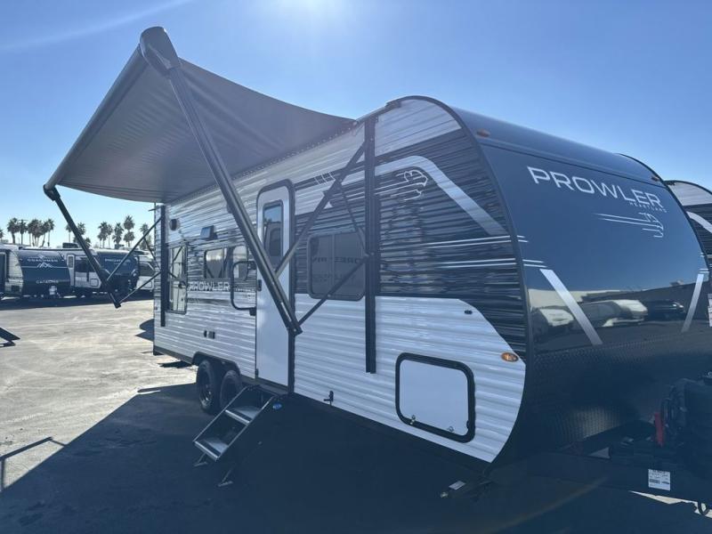 With any Prowler travel trailer, you will enjoy convenient amenities and at-home comforts wherever you decide to camp! Each one is built with a durable fully integrated A-frame, a TrussXL roof system, and galvanized wheel wells. And the self-adjusting brakes, easy-lube axles and nitrogen filled radial tires will provide smooth towing. Inside, you'll enjoy vinyl flooring throughout that will be easy to keep clean, durable, residential-inspired kitchen countertops, a residential-style high-rise kitchen faucet, and solid hardwood cabinet doors with hidden hinges and screwed stile construction. The mandatory Camping in Comfort Package includes a large folding entry door grab handle, MORryde Step Above entry steps, an on-demand tankless water heater, and stylish window shades. There are also available options that vary between single and double axle units that will allow you to customize your Prowler to fit your needs!