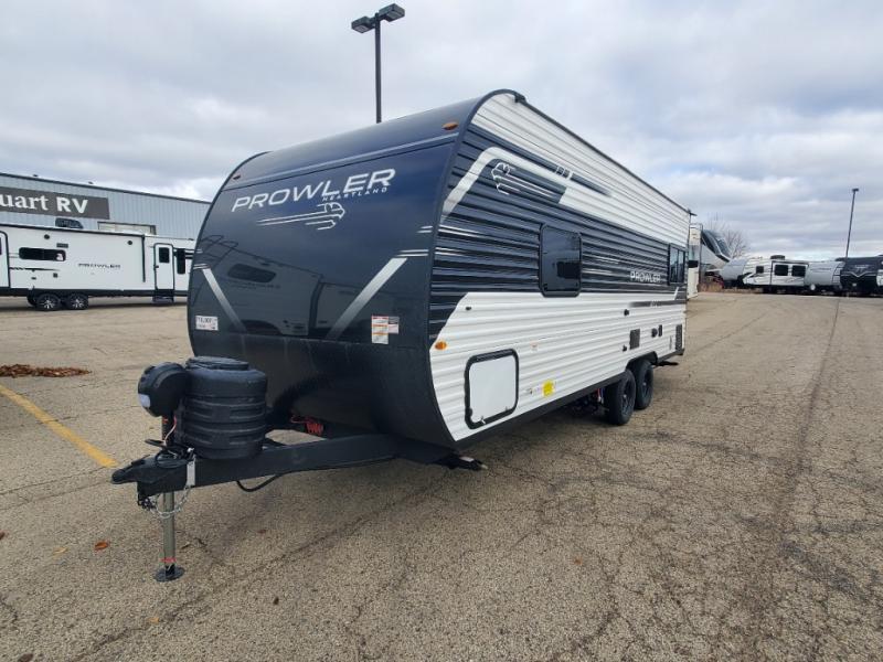With any Prowler travel trailer, you will enjoy convenient amenities and at-home comforts wherever you decide to camp! Each one is built with a durable fully integrated A-frame, a TrussXL roof system, and galvanized wheel wells. And the self-adjusting brakes, easy-lube axles and nitrogen filled radial tires will provide smooth towing. Inside, you'll enjoy vinyl flooring throughout that will be easy to keep clean, durable, residential-inspired kitchen countertops, a residential-style high-rise kitchen faucet, and solid hardwood cabinet doors with hidden hinges and screwed stile construction. The mandatory Camping in Comfort Package includes a large folding entry door grab handle, MORryde Step Above entry steps, an on-demand tankless water heater, and stylish window shades. There are also available options that vary between single and double axle units that will allow you to customize your Prowler to fit your needs!