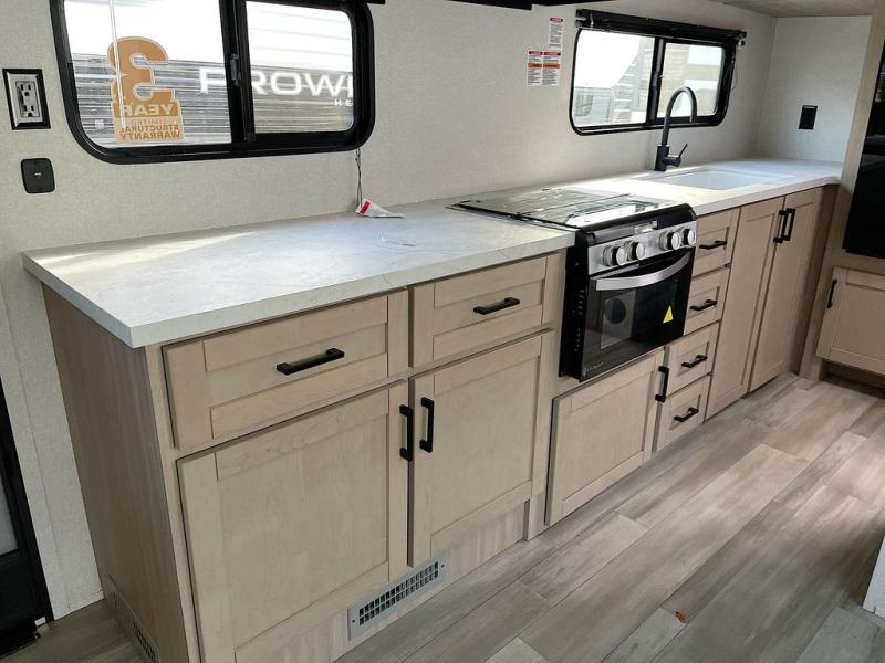With any Prowler travel trailer, you will enjoy convenient amenities and at-home comforts wherever you decide to camp! Each one is built with a durable fully integrated A-frame, a TrussXL roof system, and galvanized wheel wells. And the self-adjusting brakes, easy-lube axles and nitrogen filled radial tires will provide smooth towing. Inside, you'll enjoy vinyl flooring throughout that will be easy to keep clean, durable, residential-inspired kitchen countertops, a residential-style high-rise kitchen faucet, and solid hardwood cabinet doors with hidden hinges and screwed stile construction. The mandatory Camping in Comfort Package includes a large folding entry door grab handle, MORryde Step Above entry steps, an on-demand tankless water heater, and stylish window shades. There are also available options that vary between single and double axle units that will allow you to customize your Prowler to fit your needs!