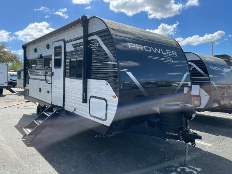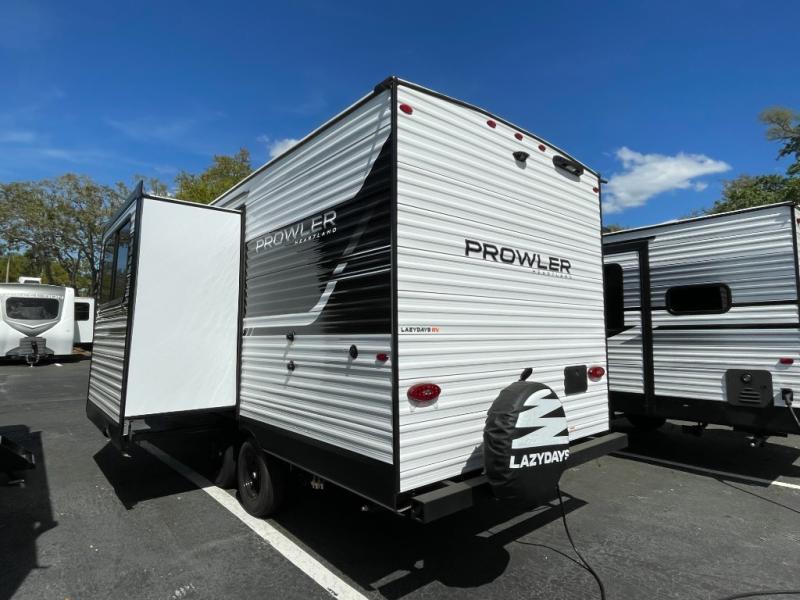 With any Prowler travel trailer, you will enjoy convenient amenities and at-home comforts wherever you decide to camp! Each one is built with a durable fully integrated A-frame, a TrussXL roof system, and galvanized wheel wells. And the self-adjusting brakes, easy-lube axles and nitrogen filled radial tires will provide smooth towing. Inside, you'll enjoy vinyl flooring throughout that will be easy to keep clean, durable, residential-inspired kitchen countertops, a residential-style high-rise kitchen faucet, and solid hardwood cabinet doors with hidden hinges and screwed stile construction. The mandatory Camping in Comfort Package includes a large folding entry door grab handle, MORryde Step Above entry steps, an on-demand tankless water heater, and stylish window shades. There are also available options that vary between single and double axle units that will allow you to customize your Prowler to fit your needs!