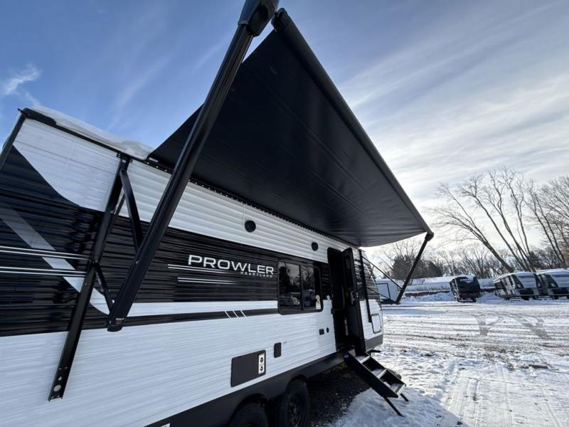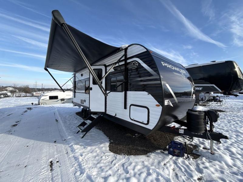 With any Prowler travel trailer, you will enjoy convenient amenities and at-home comforts wherever you decide to camp! Each one is built with a durable fully integrated A-frame, a TrussXL roof system, and galvanized wheel wells. And the self-adjusting brakes, easy-lube axles and nitrogen filled radial tires will provide smooth towing. Inside, you'll enjoy vinyl flooring throughout that will be easy to keep clean, durable, residential-inspired kitchen countertops, a residential-style high-rise kitchen faucet, and solid hardwood cabinet doors with hidden hinges and screwed stile construction. The mandatory Camping in Comfort Package includes a large folding entry door grab handle, MORryde Step Above entry steps, an on-demand tankless water heater, and stylish window shades. There are also available options that vary between single and double axle units that will allow you to customize your Prowler to fit your needs!
