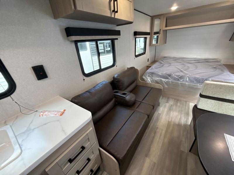 With any Prowler travel trailer, you will enjoy convenient amenities and at-home comforts wherever you decide to camp! Each one is built with a durable fully integrated A-frame, a TrussXL roof system, and galvanized wheel wells. And the self-adjusting brakes, easy-lube axles and nitrogen filled radial tires will provide smooth towing. Inside, you'll enjoy vinyl flooring throughout that will be easy to keep clean, durable, residential-inspired kitchen countertops, a residential-style high-rise kitchen faucet, and solid hardwood cabinet doors with hidden hinges and screwed stile construction. The mandatory Camping in Comfort Package includes a large folding entry door grab handle, MORryde Step Above entry steps, an on-demand tankless water heater, and stylish window shades. There are also available options that vary between single and double axle units that will allow you to customize your Prowler to fit your needs!