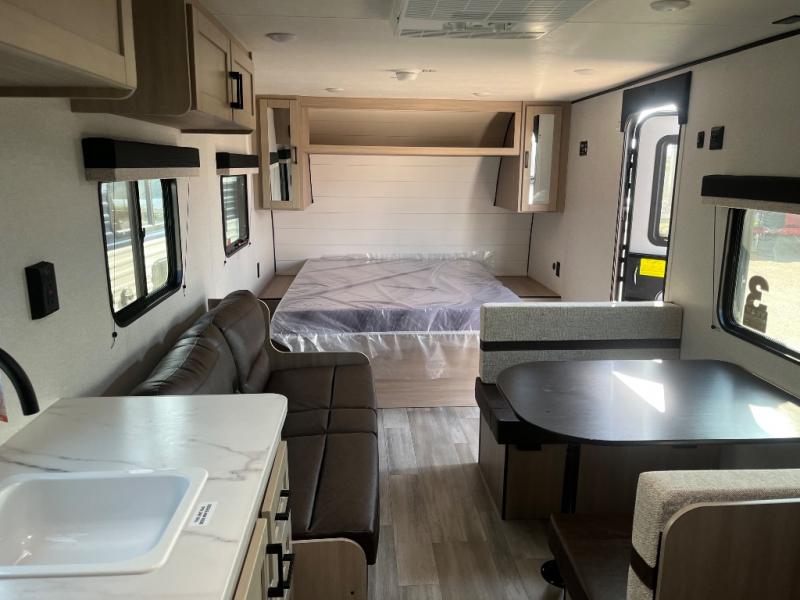 With any Prowler travel trailer, you will enjoy convenient amenities and at-home comforts wherever you decide to camp! Each one is built with a durable fully integrated A-frame, a TrussXL roof system, and galvanized wheel wells. And the self-adjusting brakes, easy-lube axles and nitrogen filled radial tires will provide smooth towing. Inside, you'll enjoy vinyl flooring throughout that will be easy to keep clean, durable, residential-inspired kitchen countertops, a residential-style high-rise kitchen faucet, and solid hardwood cabinet doors with hidden hinges and screwed stile construction. The mandatory Camping in Comfort Package includes a large folding entry door grab handle, MORryde Step Above entry steps, an on-demand tankless water heater, and stylish window shades. There are also available options that vary between single and double axle units that will allow you to customize your Prowler to fit your needs!