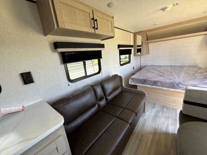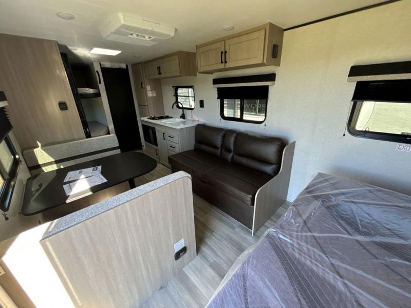 With any Prowler travel trailer, you will enjoy convenient amenities and at-home comforts wherever you decide to camp! Each one is built with a durable fully integrated A-frame, a TrussXL roof system, and galvanized wheel wells. And the self-adjusting brakes, easy-lube axles and nitrogen filled radial tires will provide smooth towing. Inside, you'll enjoy vinyl flooring throughout that will be easy to keep clean, durable, residential-inspired kitchen countertops, a residential-style high-rise kitchen faucet, and solid hardwood cabinet doors with hidden hinges and screwed stile construction. The mandatory Camping in Comfort Package includes a large folding entry door grab handle, MORryde Step Above entry steps, an on-demand tankless water heater, and stylish window shades. There are also available options that vary between single and double axle units that will allow you to customize your Prowler to fit your needs!