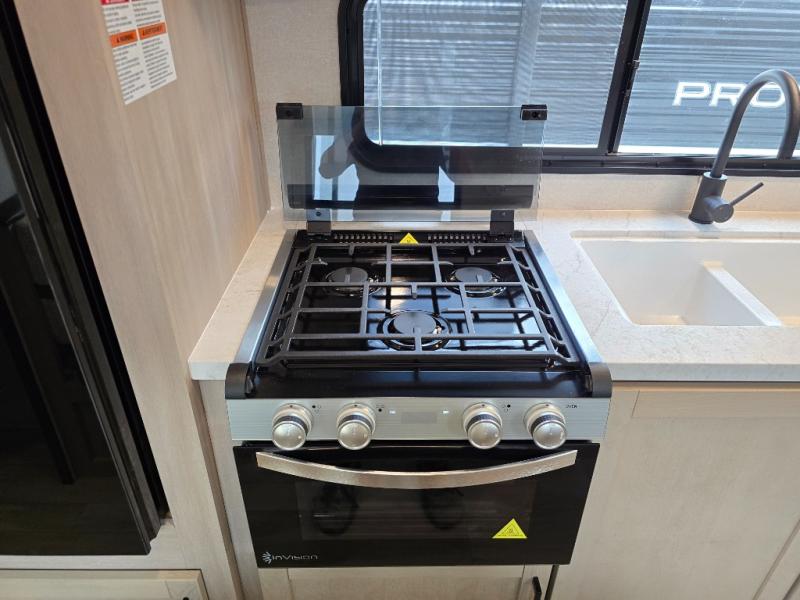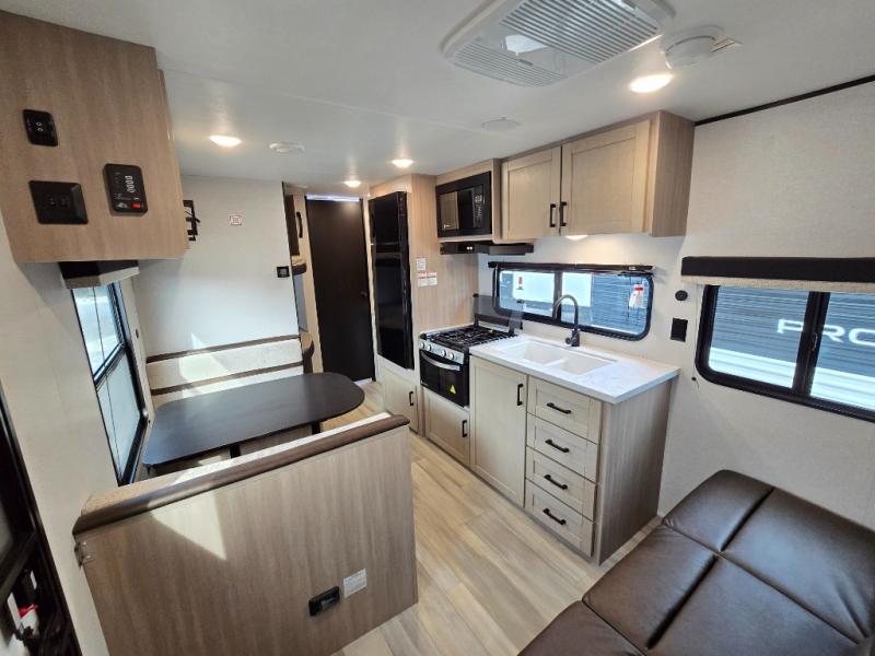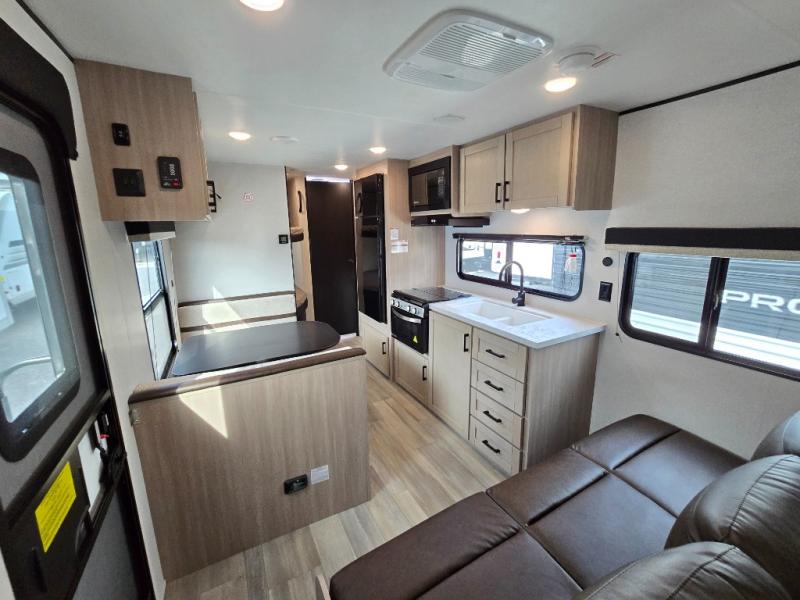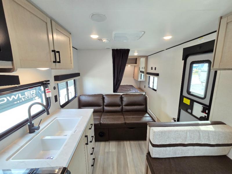 With any Prowler travel trailer, you will enjoy convenient amenities and at-home comforts wherever you decide to camp! Each one is built with a durable fully integrated A-frame, a TrussXL roof system, and galvanized wheel wells. And the self-adjusting brakes, easy-lube axles and nitrogen filled radial tires will provide smooth towing. Inside, you'll enjoy vinyl flooring throughout that will be easy to keep clean, durable, residential-inspired kitchen countertops, a residential-style high-rise kitchen faucet, and solid hardwood cabinet doors with hidden hinges and screwed stile construction. The mandatory Camping in Comfort Package includes a large folding entry door grab handle, MORryde Step Above entry steps, an on-demand tankless water heater, and stylish window shades. There are also available options that vary between single and double axle units that will allow you to customize your Prowler to fit your needs!