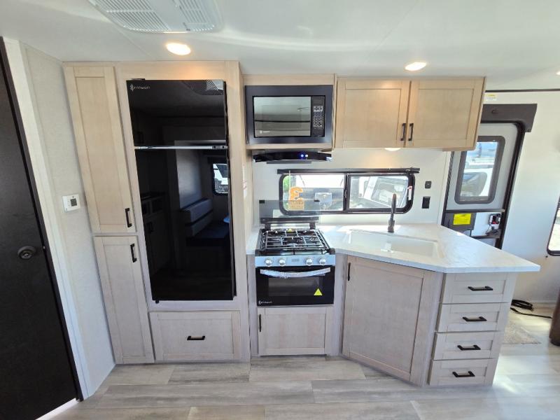 With any Prowler travel trailer, you will enjoy convenient amenities and at-home comforts wherever you decide to camp! Each one is built with a durable fully integrated A-frame, a TrussXL roof system, and galvanized wheel wells. And the self-adjusting brakes, easy-lube axles and nitrogen filled radial tires will provide smooth towing. Inside, you'll enjoy vinyl flooring throughout that will be easy to keep clean, durable, residential-inspired kitchen countertops, a residential-style high-rise kitchen faucet, and solid hardwood cabinet doors with hidden hinges and screwed stile construction. The mandatory Camping in Comfort Package includes a large folding entry door grab handle, MORryde Step Above entry steps, an on-demand tankless water heater, and stylish window shades. There are also available options that vary between single and double axle units that will allow you to customize your Prowler to fit your needs!