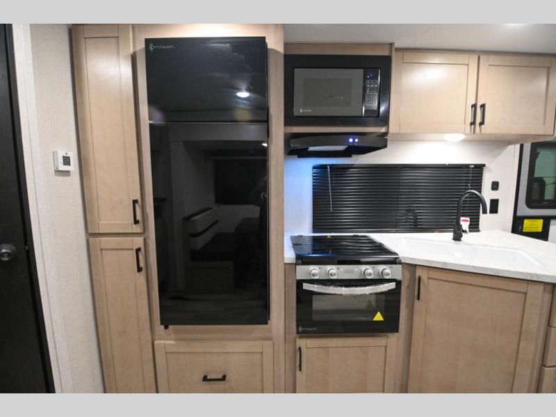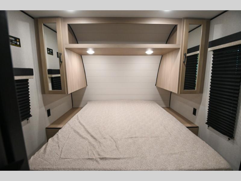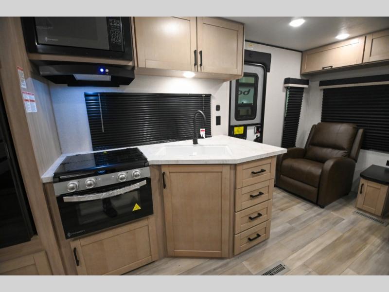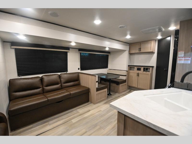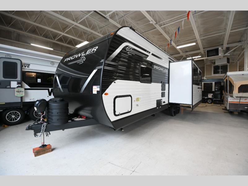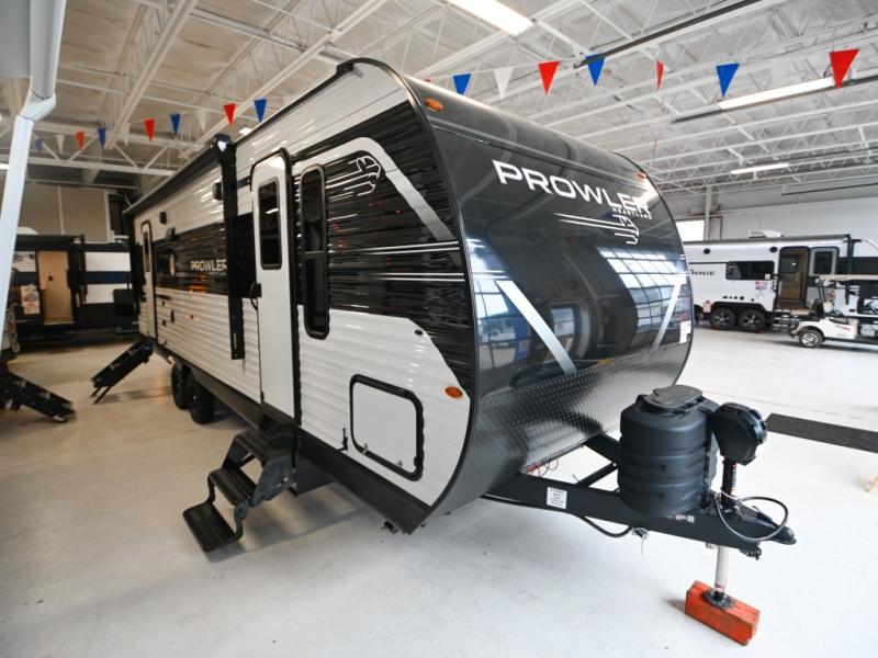 With any Prowler travel trailer, you will enjoy convenient amenities and at-home comforts wherever you decide to camp! Each one is built with a durable fully integrated A-frame, a TrussXL roof system, and galvanized wheel wells. And the self-adjusting brakes, easy-lube axles and nitrogen filled radial tires will provide smooth towing. Inside, you'll enjoy vinyl flooring throughout that will be easy to keep clean, durable, residential-inspired kitchen countertops, a residential-style high-rise kitchen faucet, and solid hardwood cabinet doors with hidden hinges and screwed stile construction. The mandatory Camping in Comfort Package includes a large folding entry door grab handle, MORryde Step Above entry steps, an on-demand tankless water heater, and stylish window shades. There are also available options that vary between single and double axle units that will allow you to customize your Prowler to fit your needs!