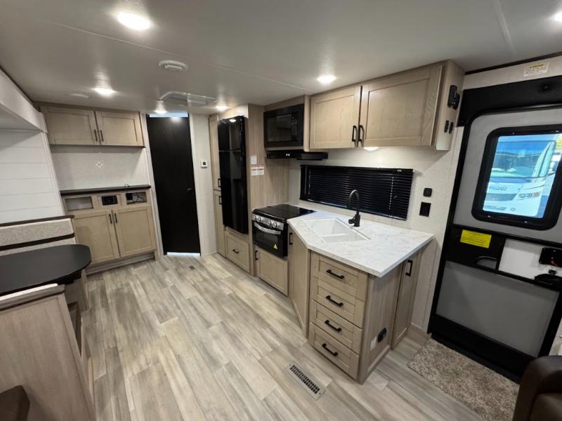 With any Prowler travel trailer, you will enjoy convenient amenities and at-home comforts wherever you decide to camp! Each one is built with a durable fully integrated A-frame, a TrussXL roof system, and galvanized wheel wells. And the self-adjusting brakes, easy-lube axles and nitrogen filled radial tires will provide smooth towing. Inside, you'll enjoy vinyl flooring throughout that will be easy to keep clean, durable, residential-inspired kitchen countertops, a residential-style high-rise kitchen faucet, and solid hardwood cabinet doors with hidden hinges and screwed stile construction. The mandatory Camping in Comfort Package includes a large folding entry door grab handle, MORryde Step Above entry steps, an on-demand tankless water heater, and stylish window shades. There are also available options that vary between single and double axle units that will allow you to customize your Prowler to fit your needs!