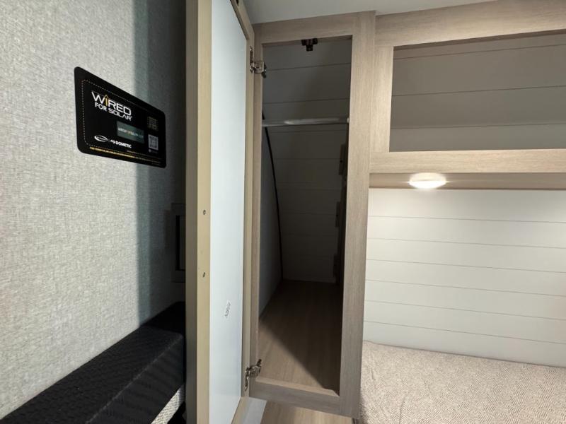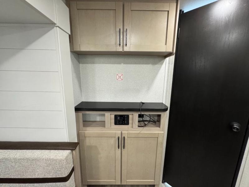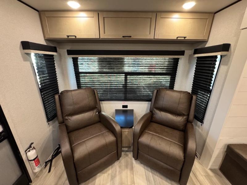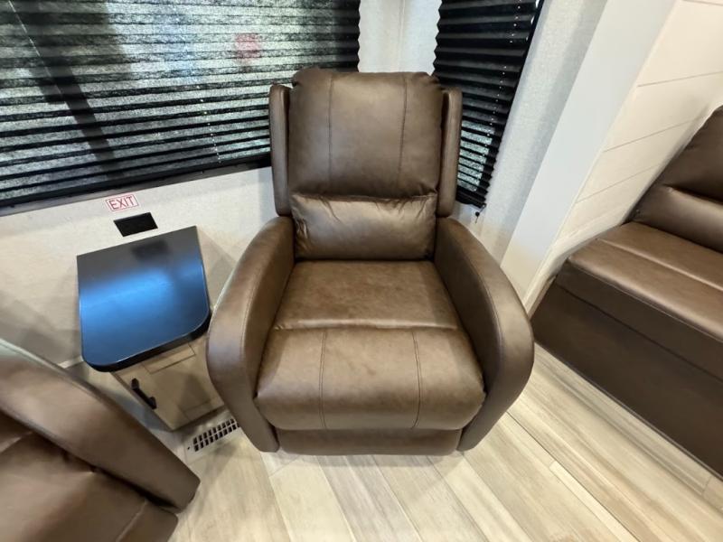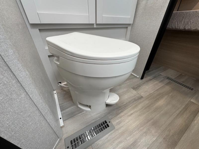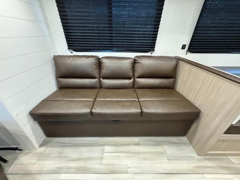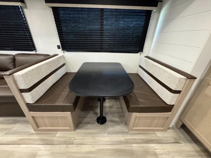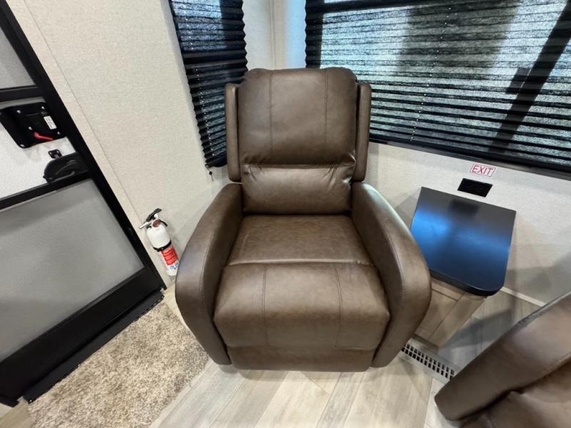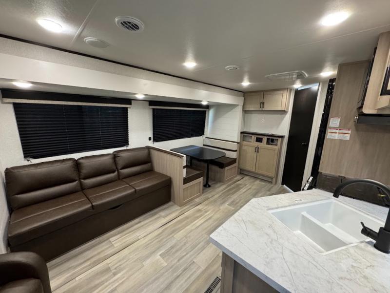 Time spent in this spacious travel trailer will be time well spent! Once you arrive at your campsite, you can put out the 18' power awning and relax in your camp chairs. The dual entry doors will allow you to enter in through the rear living room with dual lounge chairs, or the front private bedroom with an RV queen bed! The chef of your group can make lunch on the three-burner cooktop or in the microwave oven, and there is a booth dinette where you can dine together. Your guests can convert the dinette to sleeping space at night, along with the jack-knife sofa!