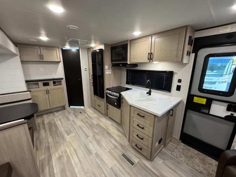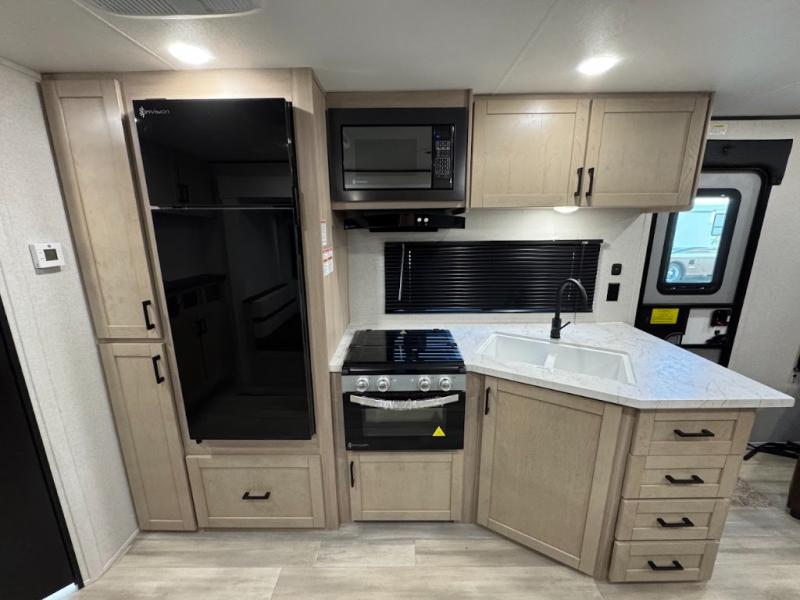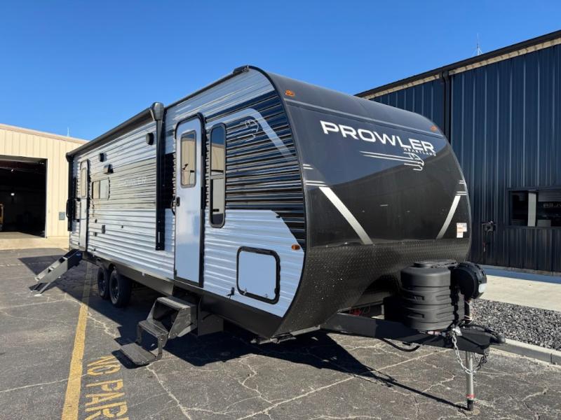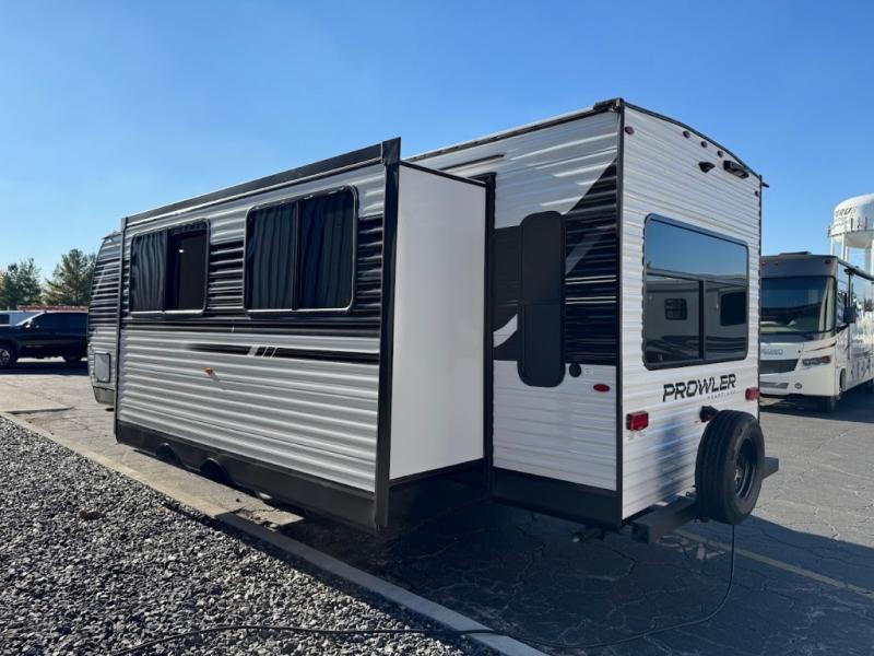 With any Prowler travel trailer, you will enjoy convenient amenities and at-home comforts wherever you decide to camp! Each one is built with a durable fully integrated A-frame, a TrussXL roof system, and galvanized wheel wells. And the self-adjusting brakes, easy-lube axles and nitrogen filled radial tires will provide smooth towing. Inside, you'll enjoy vinyl flooring throughout that will be easy to keep clean, durable, residential-inspired kitchen countertops, a residential-style high-rise kitchen faucet, and solid hardwood cabinet doors with hidden hinges and screwed stile construction. The mandatory Camping in Comfort Package includes a large folding entry door grab handle, MORryde Step Above entry steps, an on-demand tankless water heater, and stylish window shades. There are also available options that vary between single and double axle units that will allow you to customize your Prowler to fit your needs!