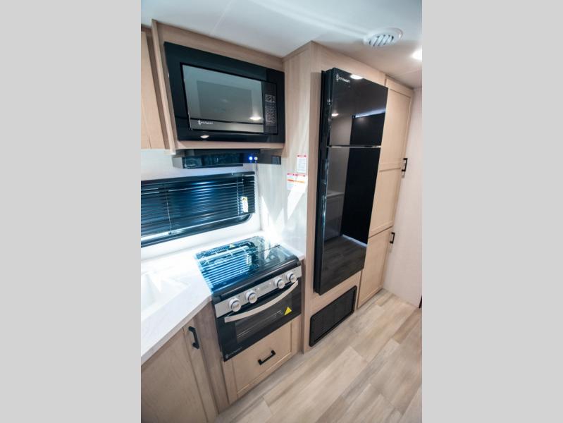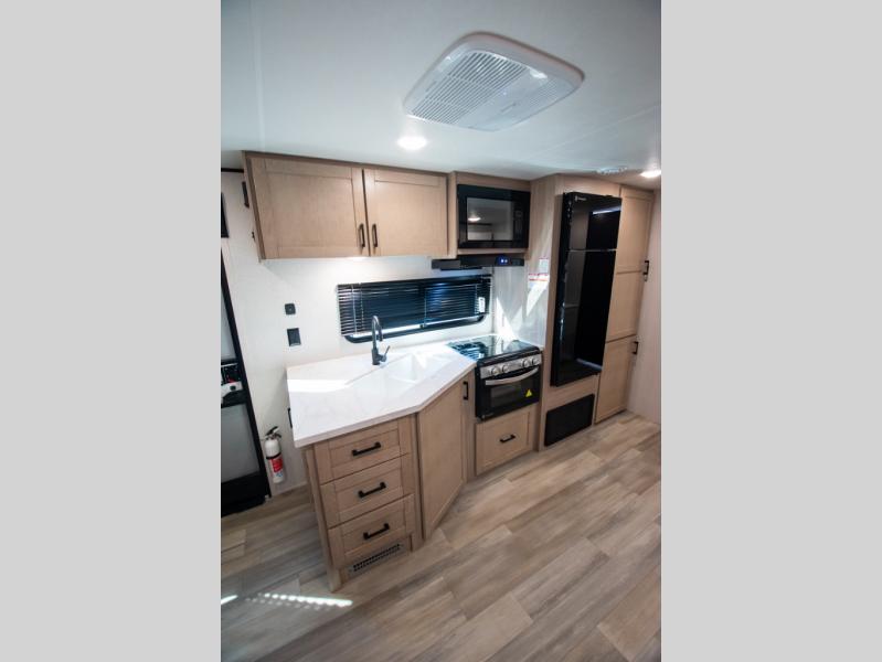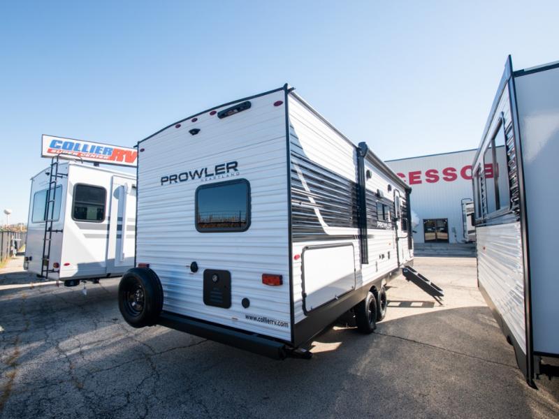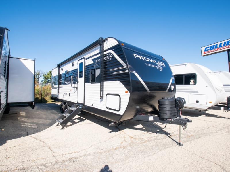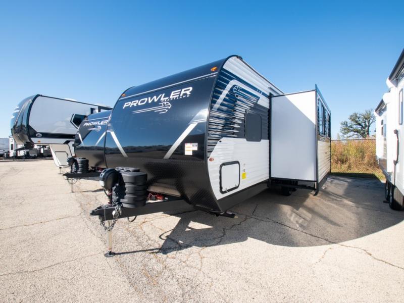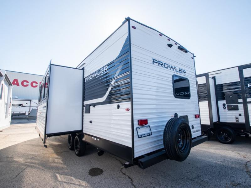 With any Prowler travel trailer, you will enjoy convenient amenities and at-home comforts wherever you decide to camp! Each one is built with a durable fully integrated A-frame, a TrussXL roof system, and galvanized wheel wells. And the self-adjusting brakes, easy-lube axles and nitrogen filled radial tires will provide smooth towing. Inside, you'll enjoy vinyl flooring throughout that will be easy to keep clean, durable, residential-inspired kitchen countertops, a residential-style high-rise kitchen faucet, and solid hardwood cabinet doors with hidden hinges and screwed stile construction. The mandatory Camping in Comfort Package includes a large folding entry door grab handle, MORryde Step Above entry steps, an on-demand tankless water heater, and stylish window shades. There are also available options that vary between single and double axle units that will allow you to customize your Prowler to fit your needs!