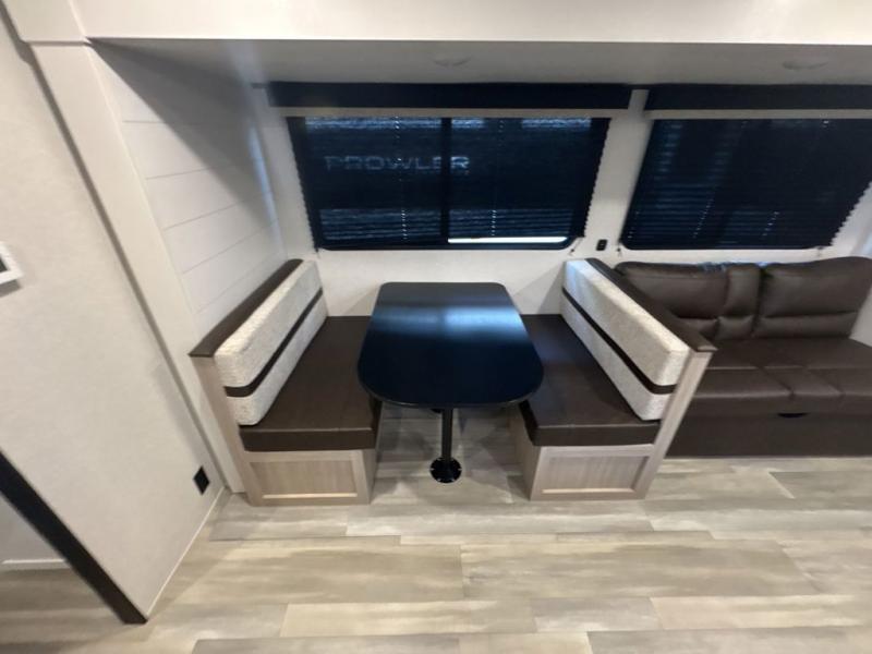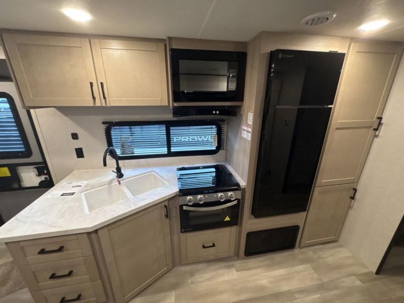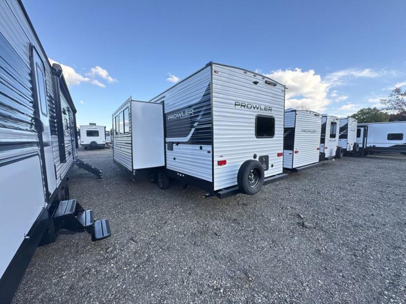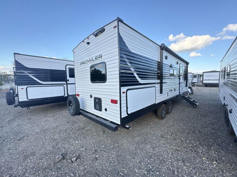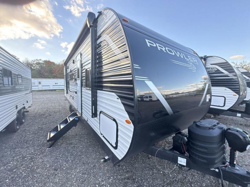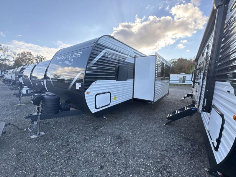 With any Prowler travel trailer, you will enjoy convenient amenities and at-home comforts wherever you decide to camp! Each one is built with a durable fully integrated A-frame, a TrussXL roof system, and galvanized wheel wells. And the self-adjusting brakes, easy-lube axles and nitrogen filled radial tires will provide smooth towing. Inside, you'll enjoy vinyl flooring throughout that will be easy to keep clean, durable, residential-inspired kitchen countertops, a residential-style high-rise kitchen faucet, and solid hardwood cabinet doors with hidden hinges and screwed stile construction. The mandatory Camping in Comfort Package includes a large folding entry door grab handle, MORryde Step Above entry steps, an on-demand tankless water heater, and stylish window shades. There are also available options that vary between single and double axle units that will allow you to customize your Prowler to fit your needs!