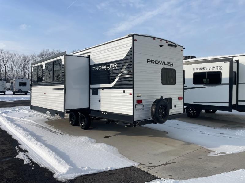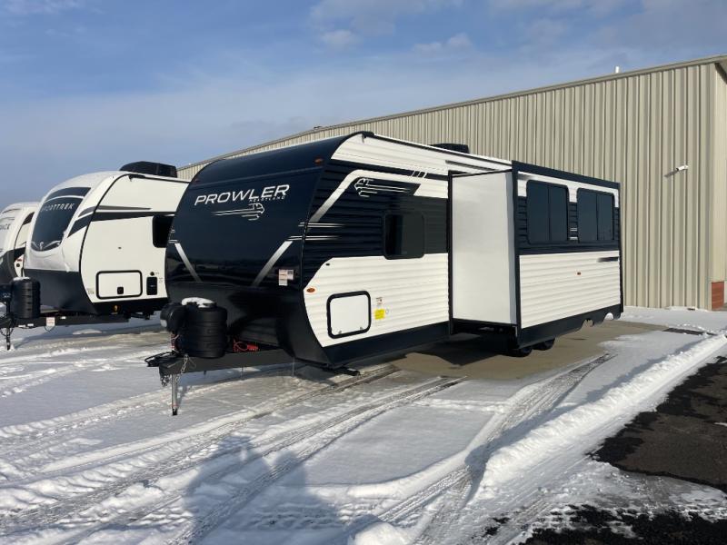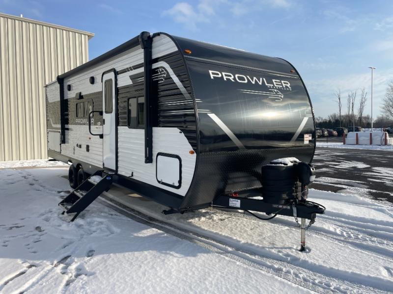 With any Prowler travel trailer, you will enjoy convenient amenities and at-home comforts wherever you decide to camp! Each one is built with a durable fully integrated A-frame, a TrussXL roof system, and galvanized wheel wells. And the self-adjusting brakes, easy-lube axles and nitrogen filled radial tires will provide smooth towing. Inside, you'll enjoy vinyl flooring throughout that will be easy to keep clean, durable, residential-inspired kitchen countertops, a residential-style high-rise kitchen faucet, and solid hardwood cabinet doors with hidden hinges and screwed stile construction. The mandatory Camping in Comfort Package includes a large folding entry door grab handle, MORryde Step Above entry steps, an on-demand tankless water heater, and stylish window shades. There are also available options that vary between single and double axle units that will allow you to customize your Prowler to fit your needs!