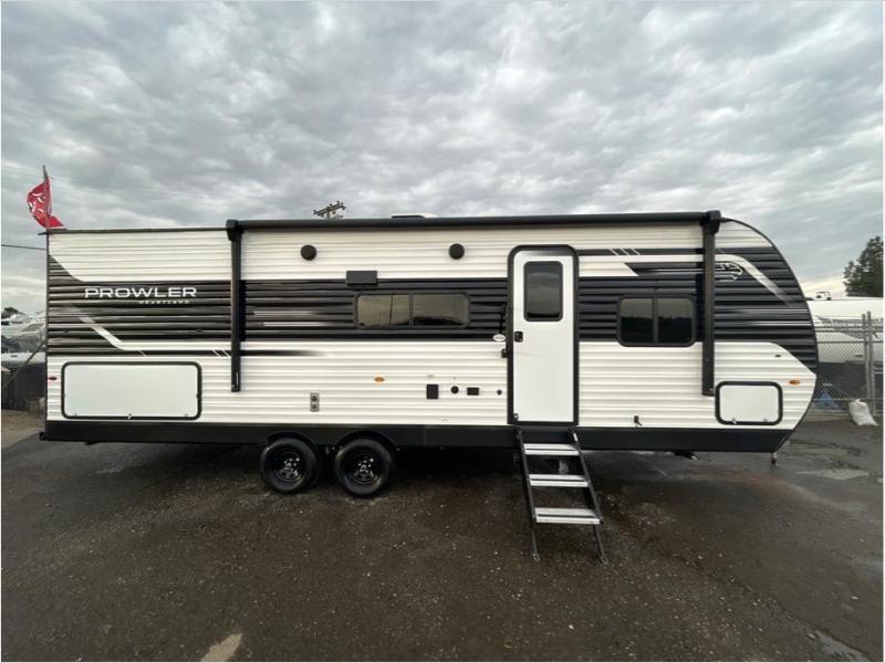 With any Prowler travel trailer, you will enjoy convenient amenities and at-home comforts wherever you decide to camp! Each one is built with a durable fully integrated A-frame, a TrussXL roof system, and galvanized wheel wells. And the self-adjusting brakes, easy-lube axles and nitrogen filled radial tires will provide smooth towing. Inside, you'll enjoy vinyl flooring throughout that will be easy to keep clean, durable, residential-inspired kitchen countertops, a residential-style high-rise kitchen faucet, and solid hardwood cabinet doors with hidden hinges and screwed stile construction. The mandatory Camping in Comfort Package includes a large folding entry door grab handle, MORryde Step Above entry steps, an on-demand tankless water heater, and stylish window shades. There are also available options that vary between single and double axle units that will allow you to customize your Prowler to fit your needs!