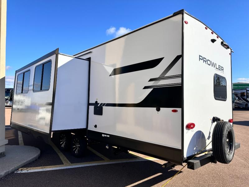 With any Prowler travel trailer, you will enjoy convenient amenities and at-home comforts wherever you decide to camp! Each one is built with a durable fully integrated A-frame, a TrussXL roof system, and galvanized wheel wells. And the self-adjusting brakes, easy-lube axles and nitrogen filled radial tires will provide smooth towing. Inside, you'll enjoy vinyl flooring throughout that will be easy to keep clean, durable, residential-inspired kitchen countertops, a residential-style high-rise kitchen faucet, and solid hardwood cabinet doors with hidden hinges and screwed stile construction. The mandatory Camping in Comfort Package includes a large folding entry door grab handle, MORryde Step Above entry steps, an on-demand tankless water heater, and stylish window shades. There are also available options that vary between single and double axle units that will allow you to customize your Prowler to fit your needs!