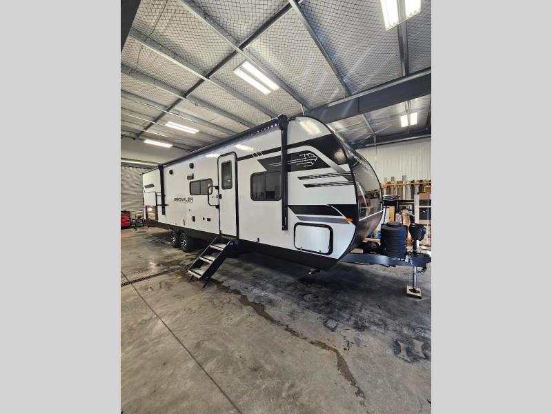 With any Prowler travel trailer, you will enjoy convenient amenities and at-home comforts wherever you decide to camp! Each one is built with a durable fully integrated A-frame, a TrussXL roof system, and galvanized wheel wells. And the self-adjusting brakes, easy-lube axles and nitrogen filled radial tires will provide smooth towing. Inside, you'll enjoy vinyl flooring throughout that will be easy to keep clean, durable, residential-inspired kitchen countertops, a residential-style high-rise kitchen faucet, and solid hardwood cabinet doors with hidden hinges and screwed stile construction. The mandatory Camping in Comfort Package includes a large folding entry door grab handle, MORryde Step Above entry steps, an on-demand tankless water heater, and stylish window shades. There are also available options that vary between single and double axle units that will allow you to customize your Prowler to fit your needs!
