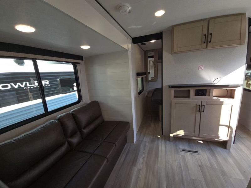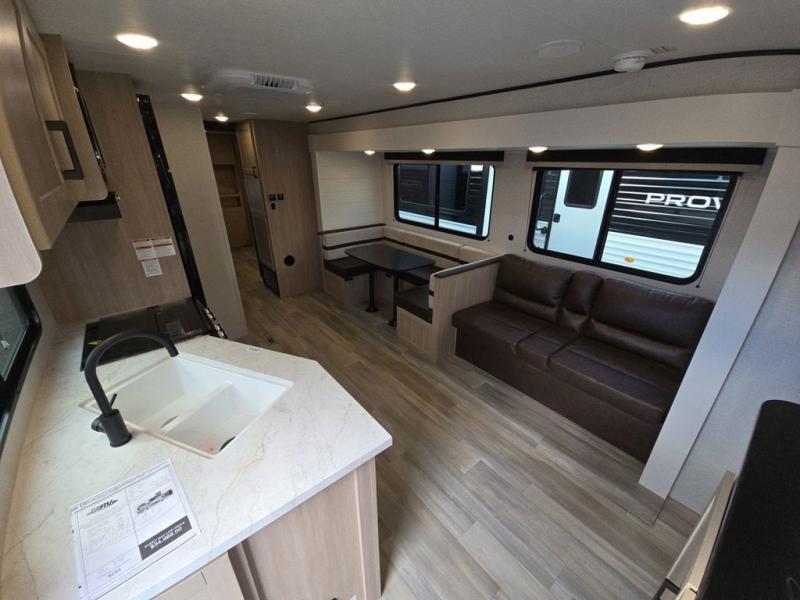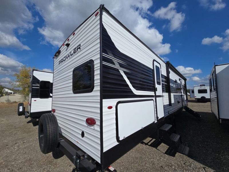 With any Prowler travel trailer, you will enjoy convenient amenities and at-home comforts wherever you decide to camp! Each one is built with a durable fully integrated A-frame, a TrussXL roof system, and galvanized wheel wells. And the self-adjusting brakes, easy-lube axles and nitrogen filled radial tires will provide smooth towing. Inside, you'll enjoy vinyl flooring throughout that will be easy to keep clean, durable, residential-inspired kitchen countertops, a residential-style high-rise kitchen faucet, and solid hardwood cabinet doors with hidden hinges and screwed stile construction. The mandatory Camping in Comfort Package includes a large folding entry door grab handle, MORryde Step Above entry steps, an on-demand tankless water heater, and stylish window shades. There are also available options that vary between single and double axle units that will allow you to customize your Prowler to fit your needs!
