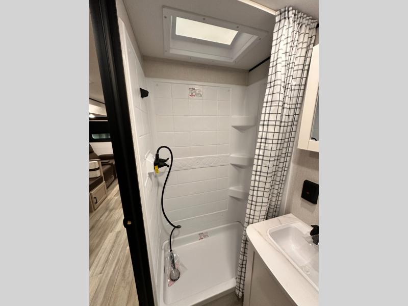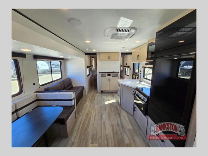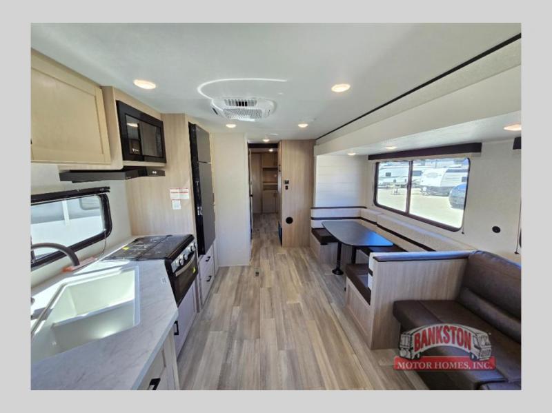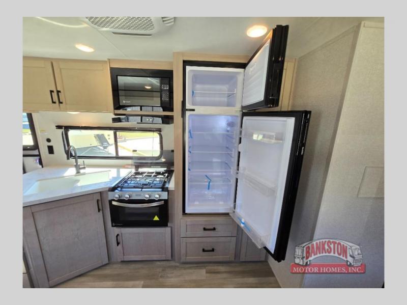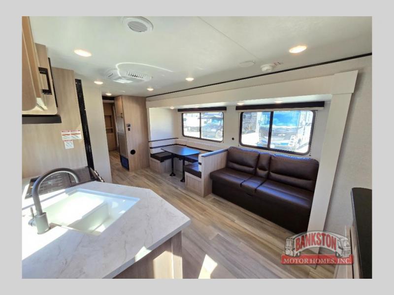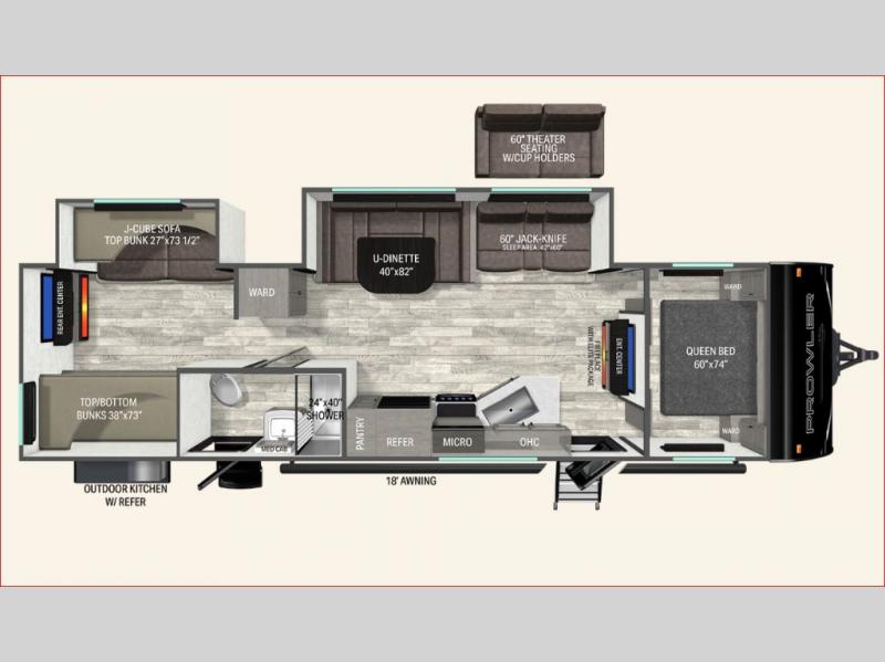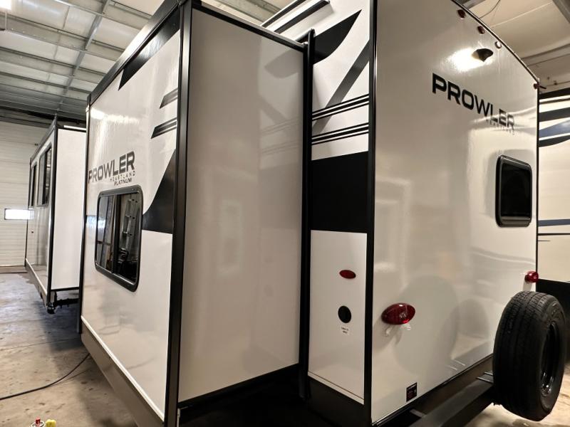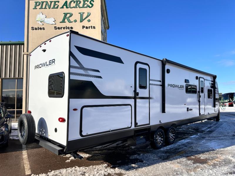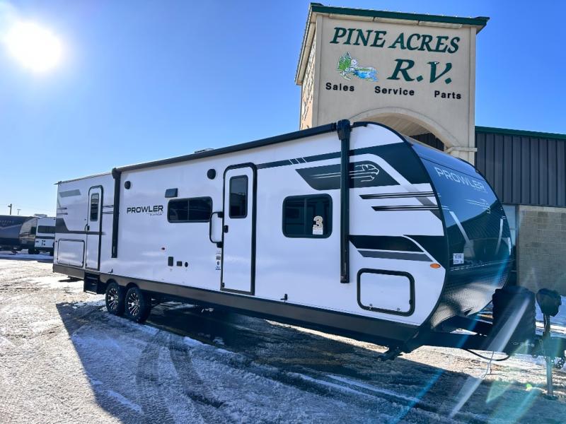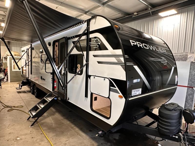 With any Prowler travel trailer, you will enjoy convenient amenities and at-home comforts wherever you decide to camp! Each one is built with a durable fully integrated A-frame, a TrussXL roof system, and galvanized wheel wells. And the self-adjusting brakes, easy-lube axles and nitrogen filled radial tires will provide smooth towing. Inside, you'll enjoy vinyl flooring throughout that will be easy to keep clean, durable, residential-inspired kitchen countertops, a residential-style high-rise kitchen faucet, and solid hardwood cabinet doors with hidden hinges and screwed stile construction. The mandatory Camping in Comfort Package includes a large folding entry door grab handle, MORryde Step Above entry steps, an on-demand tankless water heater, and stylish window shades. There are also available options that vary between single and double axle units that will allow you to customize your Prowler to fit your needs!